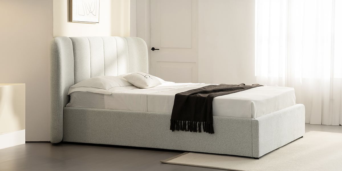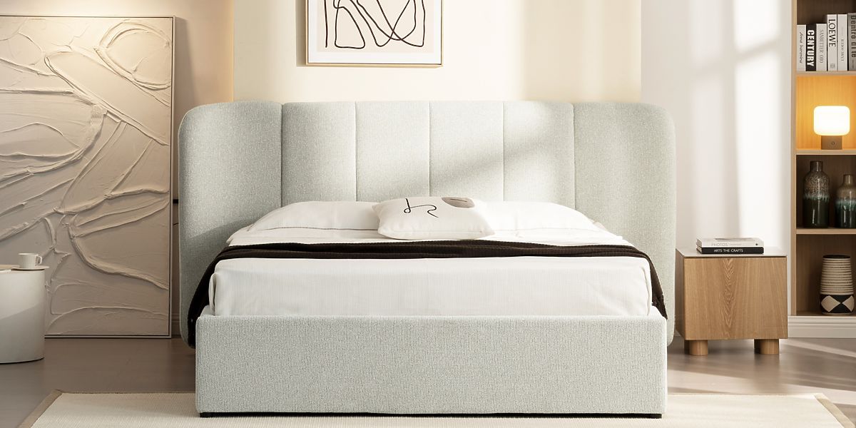 Lukafurniture.hu » Ágyak / Házassági ágyak / Ágyak 160x200 / Snoovia kárpitozott ágy 160x200 cm, ráccsal és tárolóhellyel, világos bézs