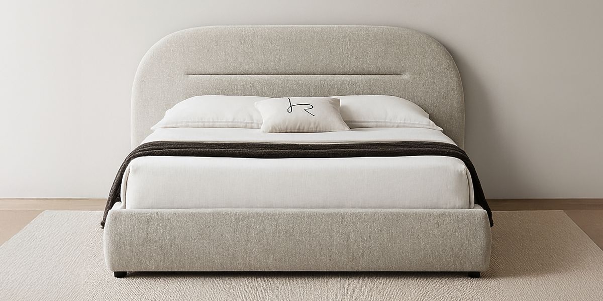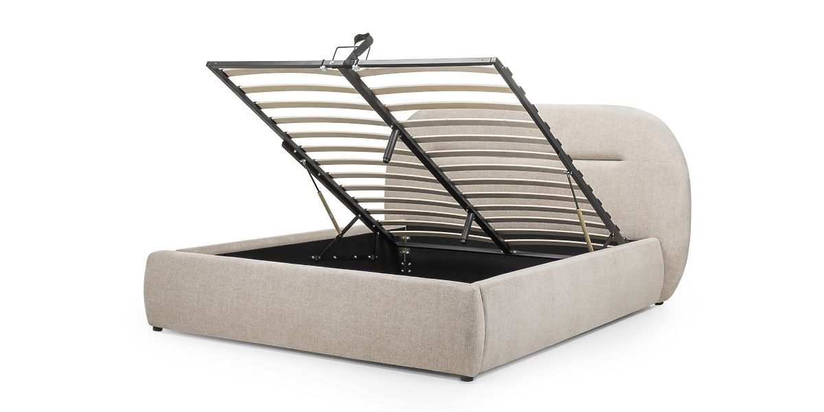 Lukafurniture.hu » Ágyak / Házassági ágyak / Ágyak 160x200 / Kárpitozott Luno ágy 160x200 cm, ráccsal és tárolóhellyel, világos bézs, lekerekített