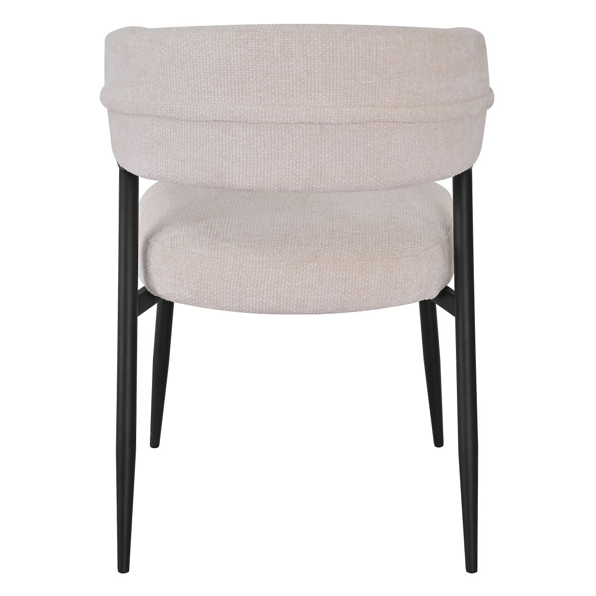 A Rosario szék a modern stílus eleganciáját és kényelmét képviseli, amely tökéletesen illeszkedik bármely étkezőbe. A lekerekített háttámlának és a habbal töltött ülésnek köszönhetően kivételes kényelmet nyújt még hosszabb ülés esetén is. A krémszínű, puha szövetkárpit otthonosságot és finom bájt kölcsönöz a belső térnek, meleg akcentust hozva a dekorációba. A fekete porszórt fém szerkezet nemcsak figyelemfelkeltő, hanem hosszú évekre garantálja a tartósságot és stabilitást is. Ideális választás azok számára, akik értékelik a magas minőségű kidolgozást és az esztétikus dizájnt.