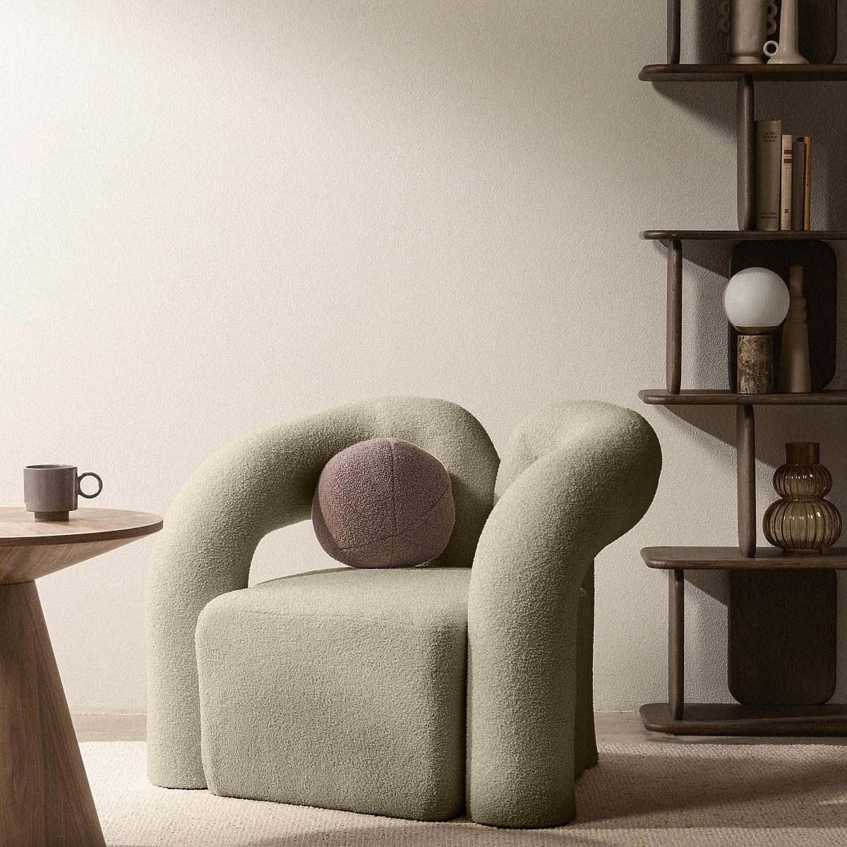 Lukafurniture.hu » Fotelek és ülés / Fotelek / Kárpitozott Merry fotel barna, boucle, lekerekített formák