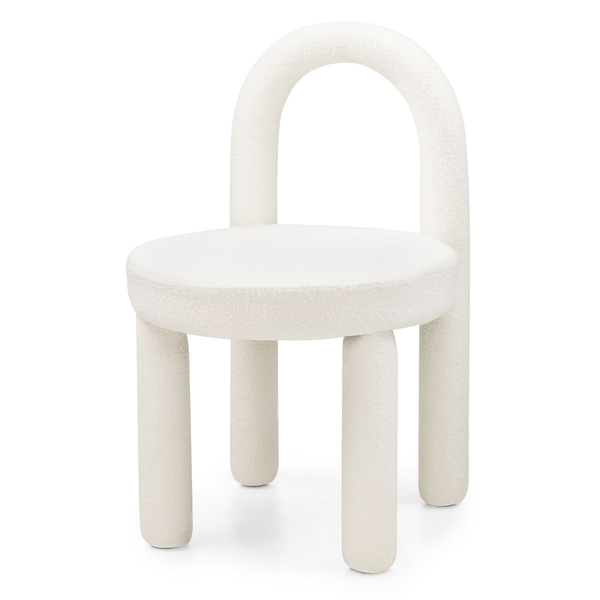 Az Ivo szék a modern design kvintesszenciája, kivételes részletekkel és organikus vonalakkal gazdagítva, amelyek minden belső tér érdekes elemévé teszik. Lágyan lekerekített formája és íves háttámlája nemcsak eleganciát kölcsönöz, hanem kedvelt hellyé is teszi a pihenés pillanataira. Az egész szék szerkezetét borító ekrü színű buklé szövet otthonosságot és finom luxusérzetet hoz a belső térbe. A szilárd szerkezet tartósságot garantál, és az átgondolt forma az ergonómiára figyelve biztosítja a kényelmet hosszabb ideig tartó ülés során. Az Ivo szék remekül illik a fésülködőasztalhoz, a nappaliba vagy az étkezőbe - mindenhol, ahol fontos a kényelem és a modern esztétika összekapcsolása.