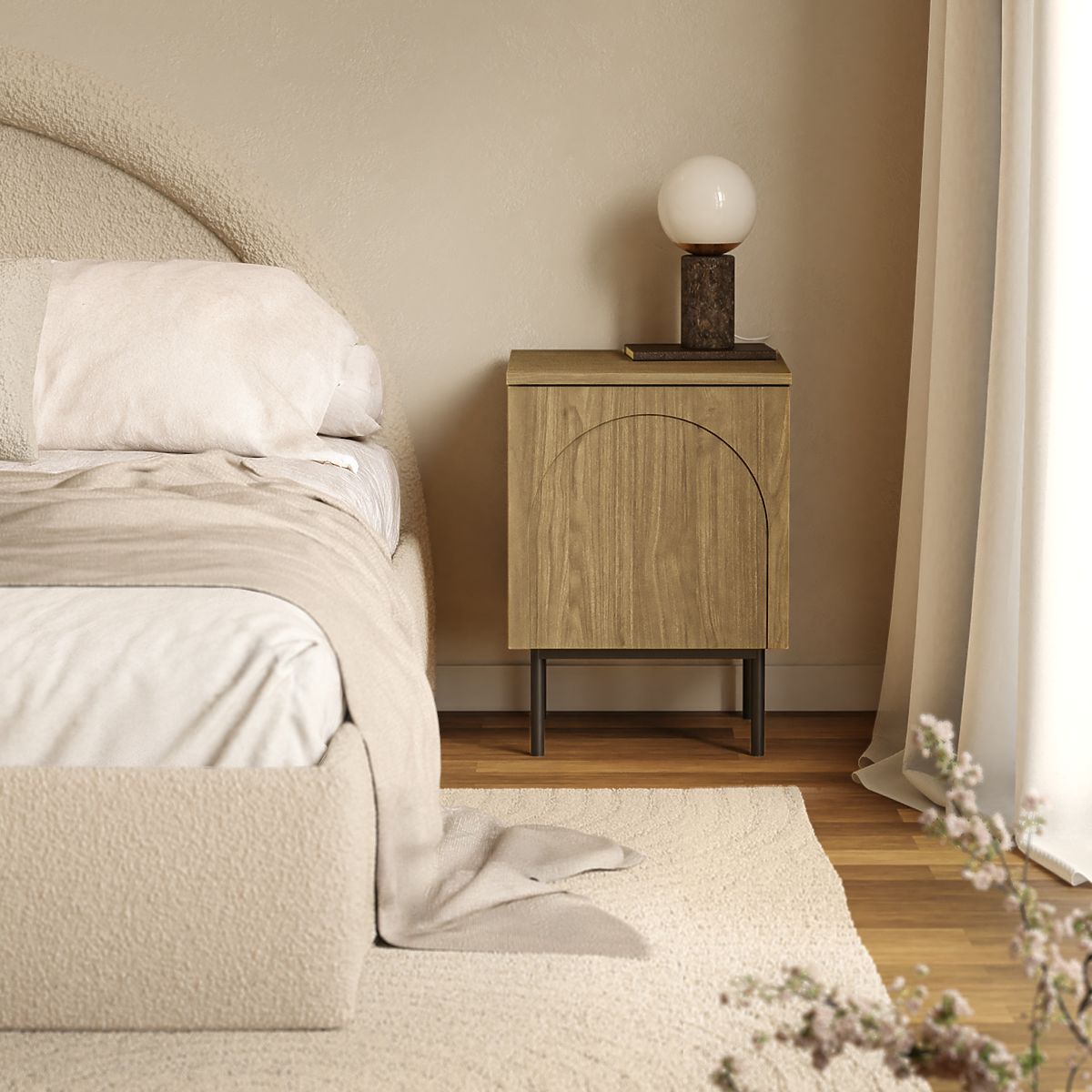 A Helene éjjeliszekrény nemcsak egyedi karaktert kölcsönöz hálószobájának, hanem rengeteg funkcionális tárolóhelyet is biztosít. A zárt szekrény praktikus polccal lehetővé teszi, hogy könnyedén rendszerezze az összes apróságot, amit kéznél szeretne tartani, és a push to open nyitórendszer rendkívüli kényelmet biztosít a használat során. Az asztalka nemcsak tökéletesen teljesíti gyakorlati feladatait, hanem valódi ékszerré válik a belső térben. A dekoratív íves marással ellátott stílusos előlap egyedi karaktert ad neki, és a magas lábaknak köszönhetően az egész könnyed és finom megjelenést kap.