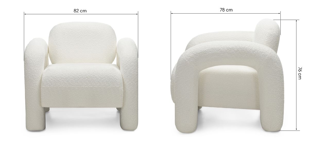 Modern designú, krémszínű boucle szövettel borított relaxációs szék. .. többet