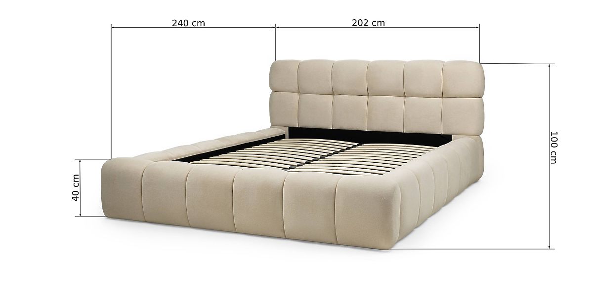 Lukahome.hu » Ágyak / Franciaágy / Ágyak 160x200 / Kárpitozott Nexo ágy 160x200 cm, ráccsal és tárolóval, világos bézs, lekerekített formák