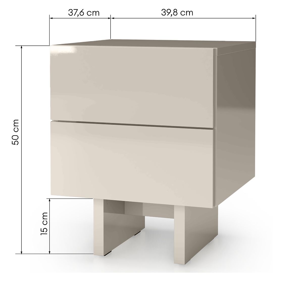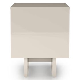 A Glim éjjeliszekrény a kifinomult egyszerűség szinonimája, amely meghatározza a kortárs stílust. A kasmír árnyalat nyugalmat hoz a belső térbe, miközben finom, de kifejező esztétikai hangsúlyt ad. A bútor tökéletes kivitelezésével varázsol el — a korpusz és a lábak külső élei magas fényűek. Ez a kivitel diszkréten játszik a fénnyel, és kifejezővé teszi a formát. A kontrasztos, matt lábbelső a részletekre és a textúrák esztétikájára való odafigyelést tárja fel. A Glim tiszta formája kivételes funkcionalitást rejt. Két tágas fiókja, hagyományos fogantyúk nélkül, simán nyílik a push to open rendszernek köszönhetően, és zárásuk mindig diszkrét a csendes záródási mechanizmus révén. A Glim a stílus és a kényelem kombinációja, a kortárs dizájn szerelmeseinek szánva, akik értékelik a rendet és a minőségi kidolgozást.