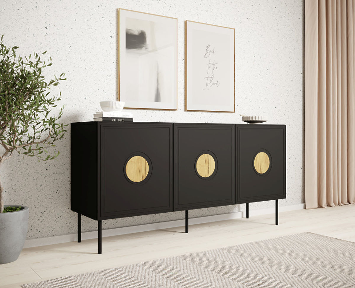 Lukafurniture.hu » Do itthon / élő szoba / Komódok / PALAZZO 150 (4D) komód fekete matt/tölgy craft