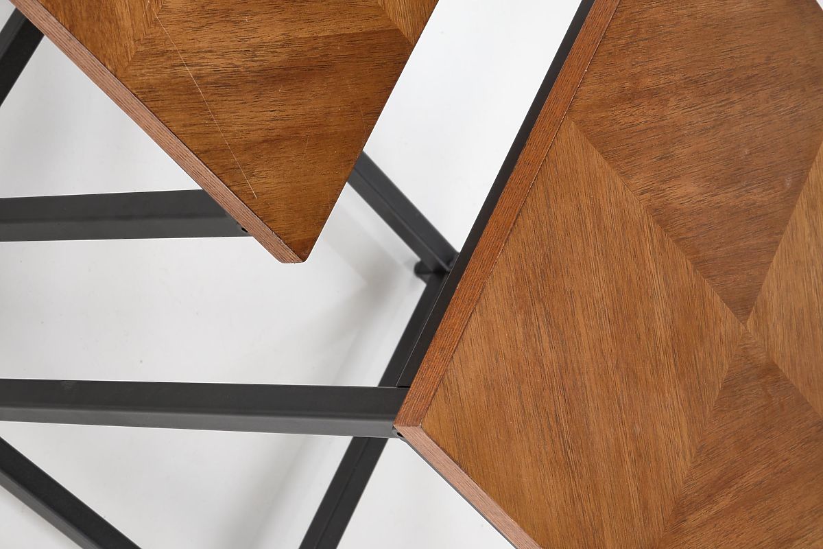 2 padkészlet, méretek: 40/40/49 és 30/30/39 cm, anyag: MDF + természetes furnér / porszórt acél, szín: lap - dió, lábak - fekete