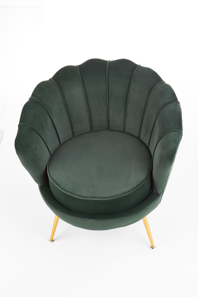 Sötétzöld relaxációs szék arany lábakkal. .. többet