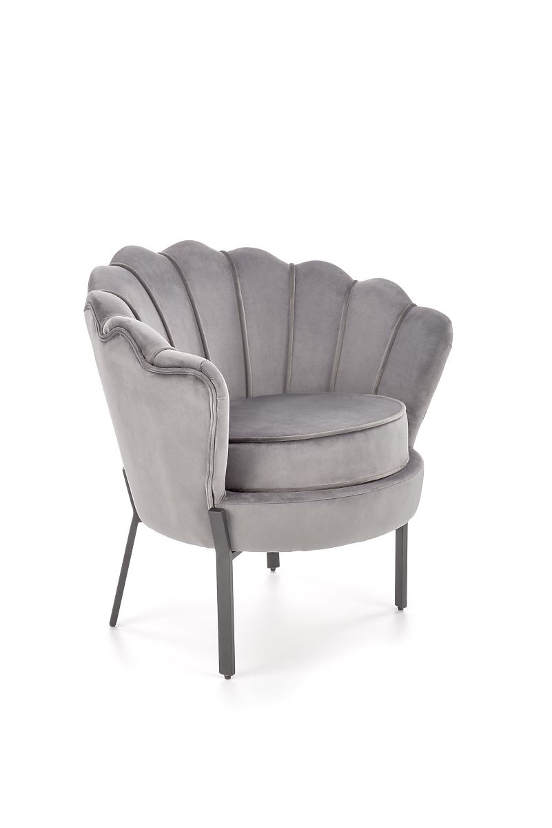 Szürke bársony relaxációs fotel fekete lábakkal. .. többet