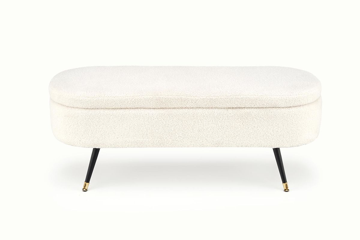 AVEIRO pad ideális módja annak, hogy stílusosan bővítse az ülőhelyet, miközben értékes tárolóhelyet is nyer. Modern, finom krém színű kialakításával eleganciát és otthonosságot kölcsönöz a belső térnek. Tökéletesen kiegészíti a hálószobát az ágy mellett, kiváló kiegészítője lehet a nappali kanapéjának, és praktikus megoldást nyújt az előszobában is. Az ülőfelület buklé szövettel van bevonva, amely finom báránygyapjúra emlékeztet. Ez a puha, meleg anyag minden ülést kellemes és kényelmes élménnyé varázsol. A pad stílusos és egyben otthonos – ideális modern, skandináv vagy minimalista enteriőrökbe. Az AVEIRO pad felbecsülhetetlen előnye a praktikus tárolóhely, amely a dugattyúkkal rögzített felnyitható fedél alatt található. Itt elférnek ruhák, kiegészítők, textíliák vagy más apróságok, amelyeket mindig kéznél szeretne tartani, de nem szem előtt.