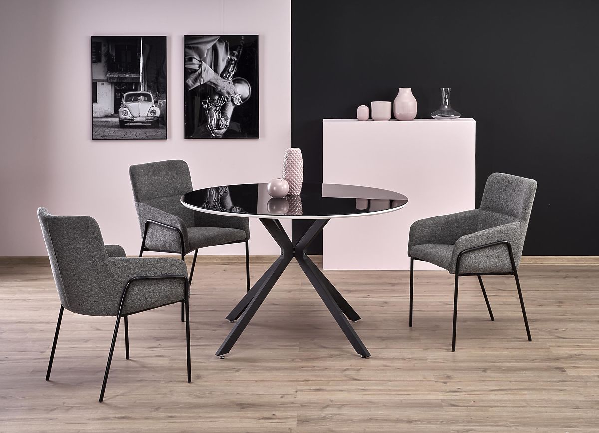 Kerek, fekete-fehér asztal 4 személy részére, stabil MDF és acél szerkezettel. .. többet