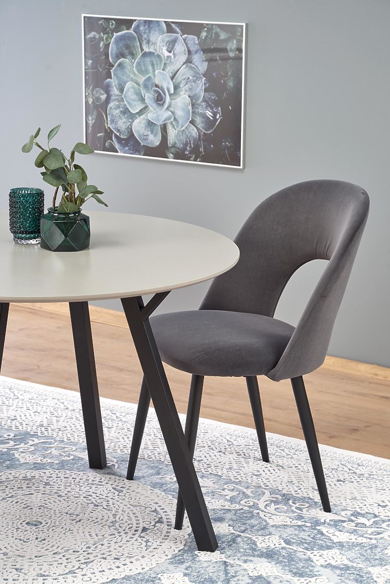 Kerek asztal világosszürke lappal és fekete lábakkal. .. többet