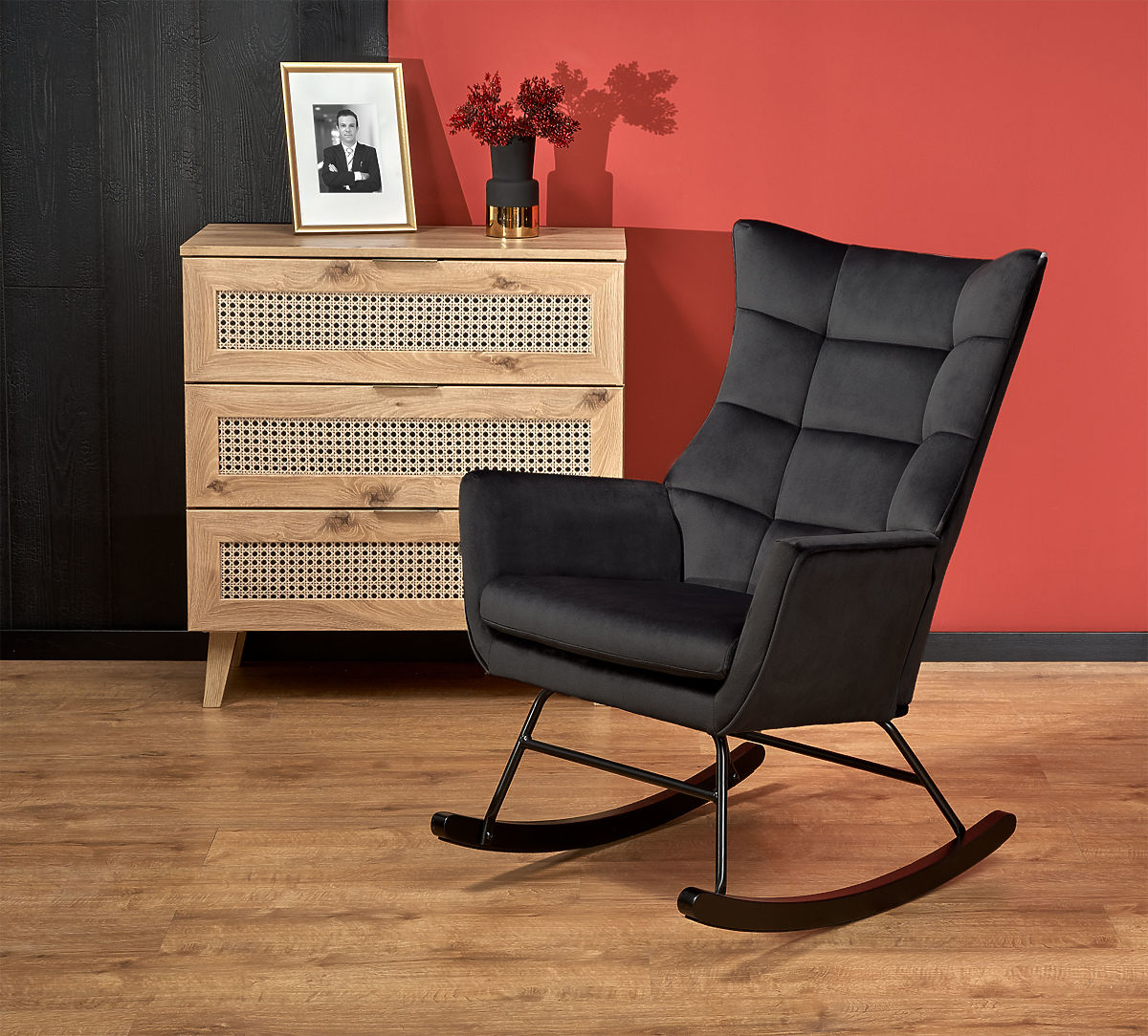 méretek: 70/90/92/48 cm, anyag: szövet - bársony / porszórt acél / tömör fa, szín: fekete HLR 66