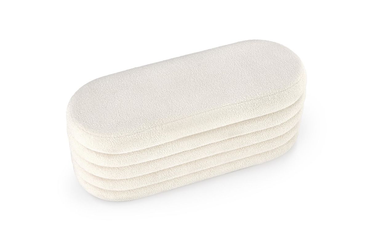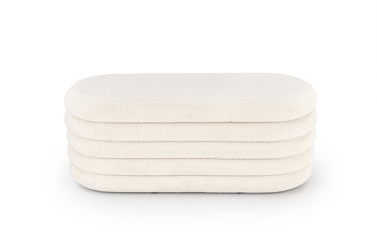 Krémszínű pad tárolóhellyel, bouclé szövetből. .. többet