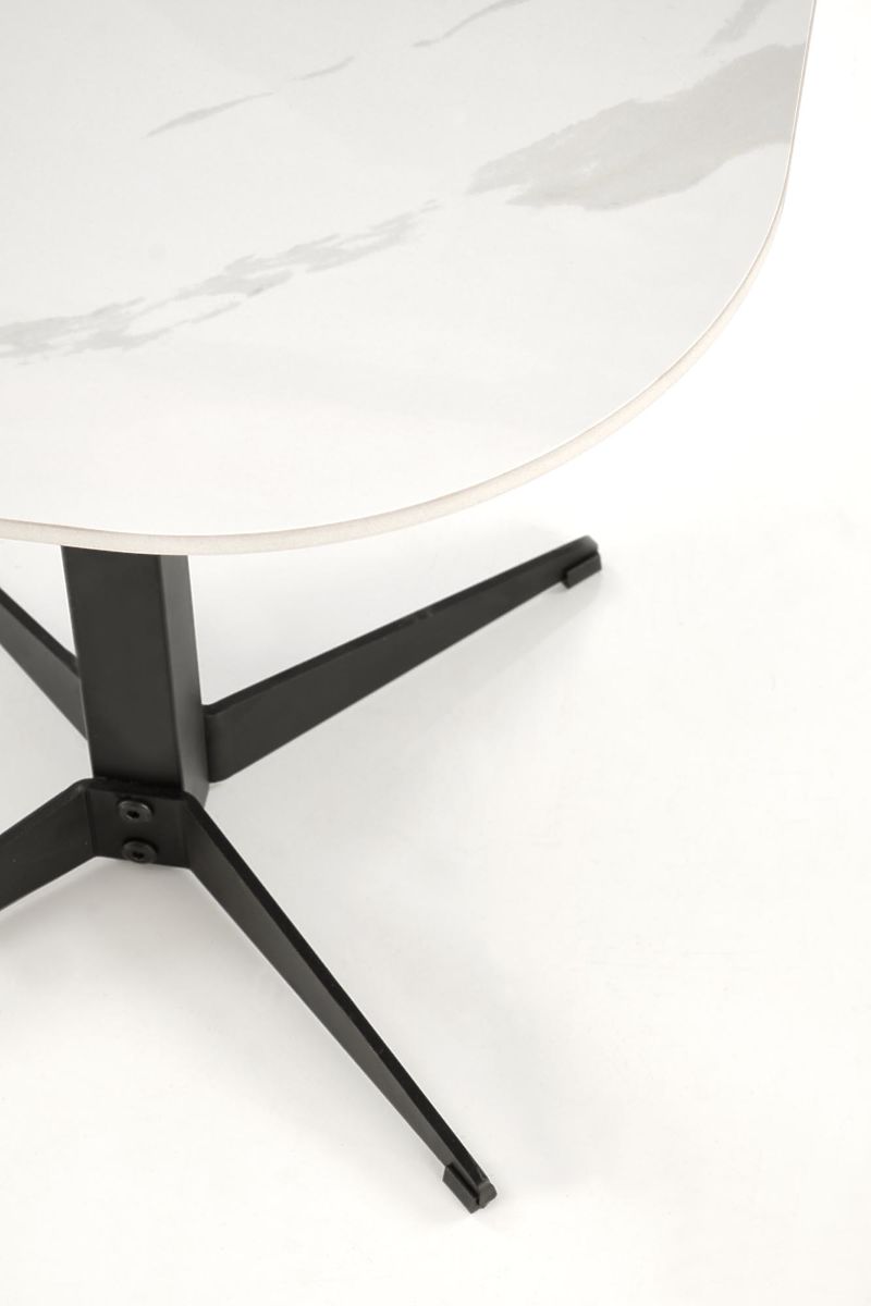 Fehér márvány asztal fekete acéllábbal. .. többet