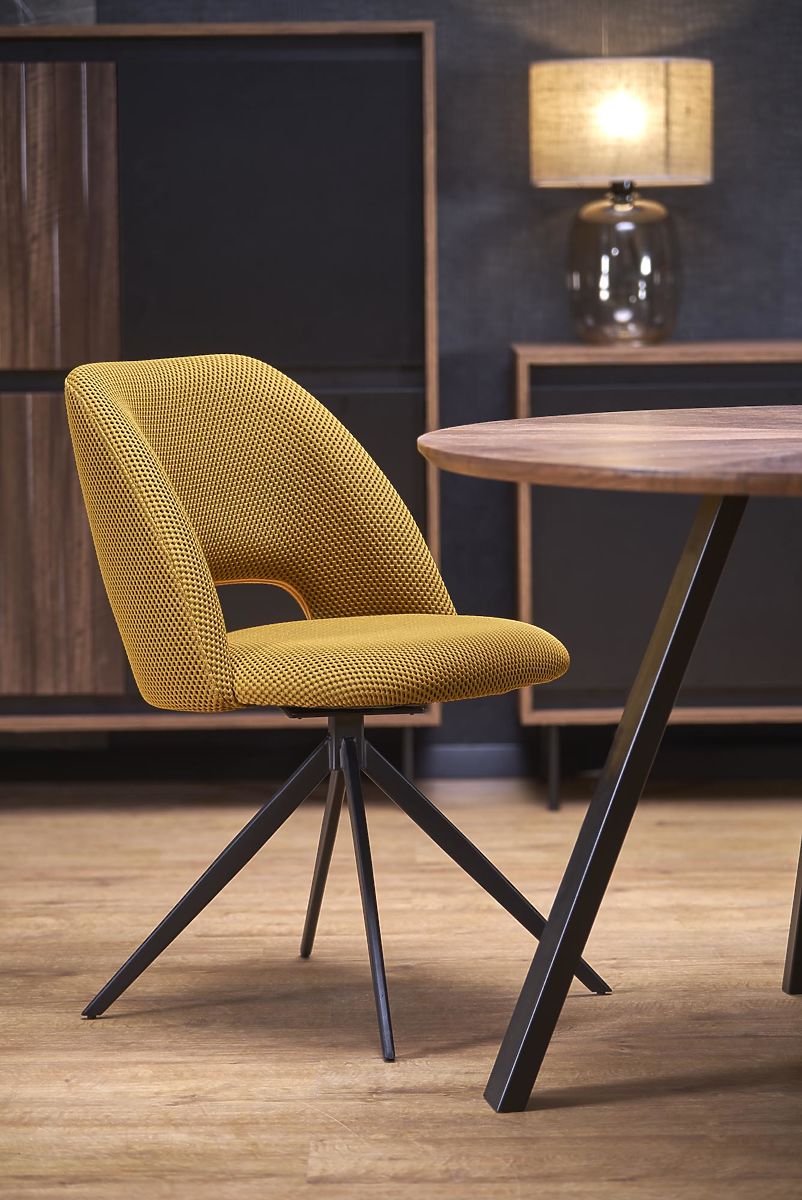 Kerek asztal dió lappal és fekete lábakkal. .. többet