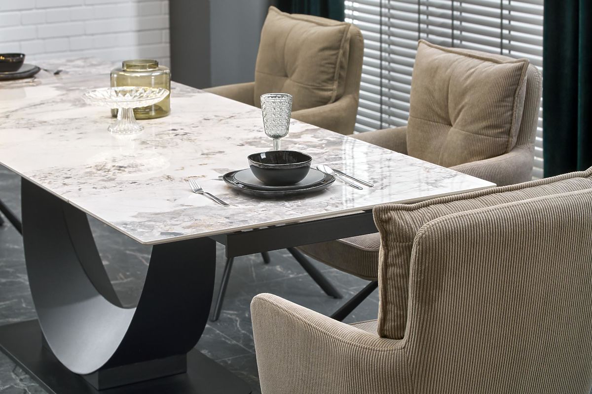Lukahome.hu » Étkező és konyha / Étkezőasztalok / FERNANDO kihúzható asztal, lap - fehér márvány, lábak - fekete (3p=1ks)