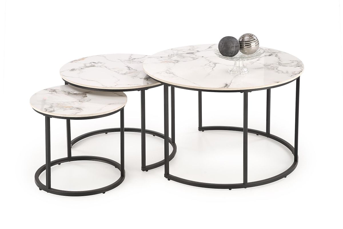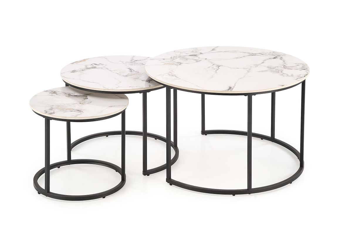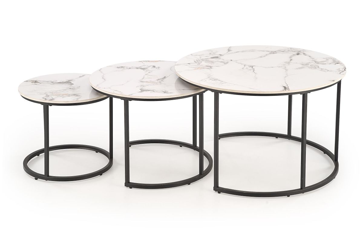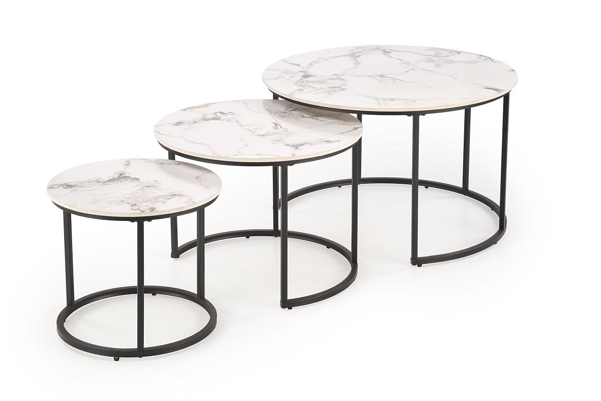 Lukahome.hu » Asztalok és dohányzóasztalok / Dohányzóasztalok / GILDA 3 asztal szett, fehér márvány / fekete (1p=1készlet)