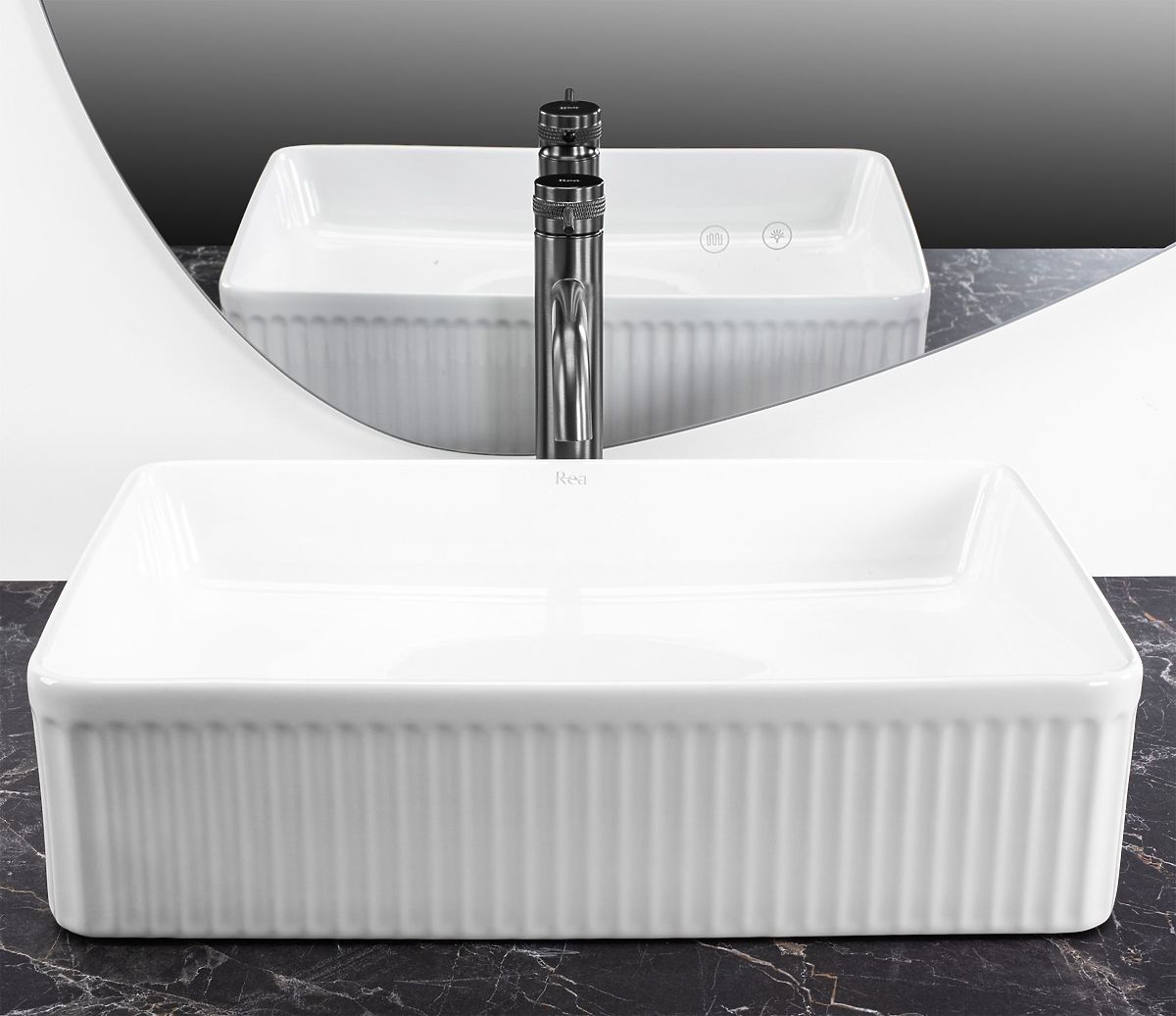 Bemutatjuk a bútor mosdókagylót, amely modern megjelenést és magas funkcionalitást kölcsönöz fürdőszobájának. A mosdókagyló kiváló minőségű szaniter kerámiából készült. Külső felülete bordázott, ami érdekes vizuális hatást kelt, és egyedi karaktert ad a fürdőszobának.