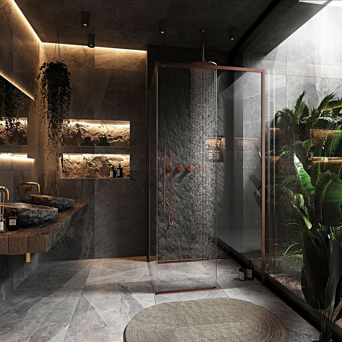 A Solar egy feltűnő, mégis időtlen és modern zuhanykabin, amely a legkiválóbb anyagokból készült, és gyönyörű réz színben készült. A gyönyörű, kefélt felület ellenáll a szennyeződéseknek és foltoknak, és könnyen tisztán tartható. A réz profilok, a hosszú fogantyú és a pántok kombinációja az üvegfelületek átlátszó vonalával tökéletesen illeszkedik a modern és hagyományos fürdőszobákba is.
