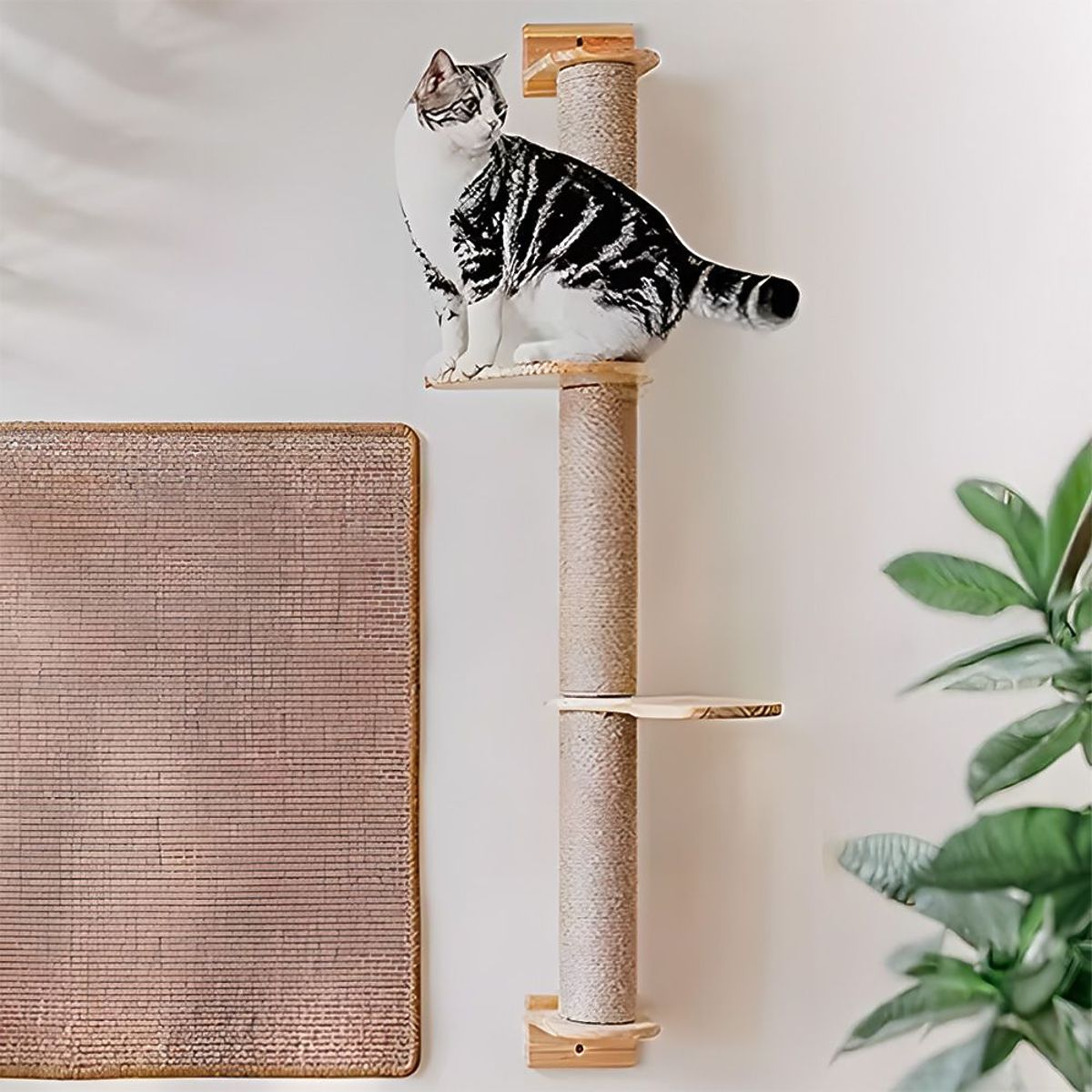 Biztosítson macskájának ideális helyet a mászáshoz, kaparáshoz és a környezet megfigyeléséhez! A fali macskakaparónk praktikus és stílusos megoldás, amely remekül illik bármilyen belső térbe – nem foglal helyet a padlón, miközben rengeteg szórakozást kínál kedvencének. A falra szerelt kaparó erős, szizállal bevont oszloppal van ellátva, amely ideális hely a kaparáshoz. Két stabil fa polc lehetővé teszi a macskának a mászást és a pihenést különböző szinteken. Ez az ideális megoldás az aktív és kíváncsi macskák számára.