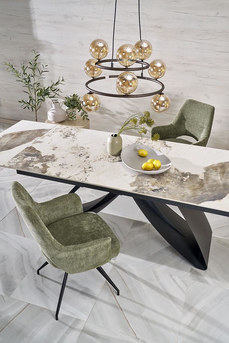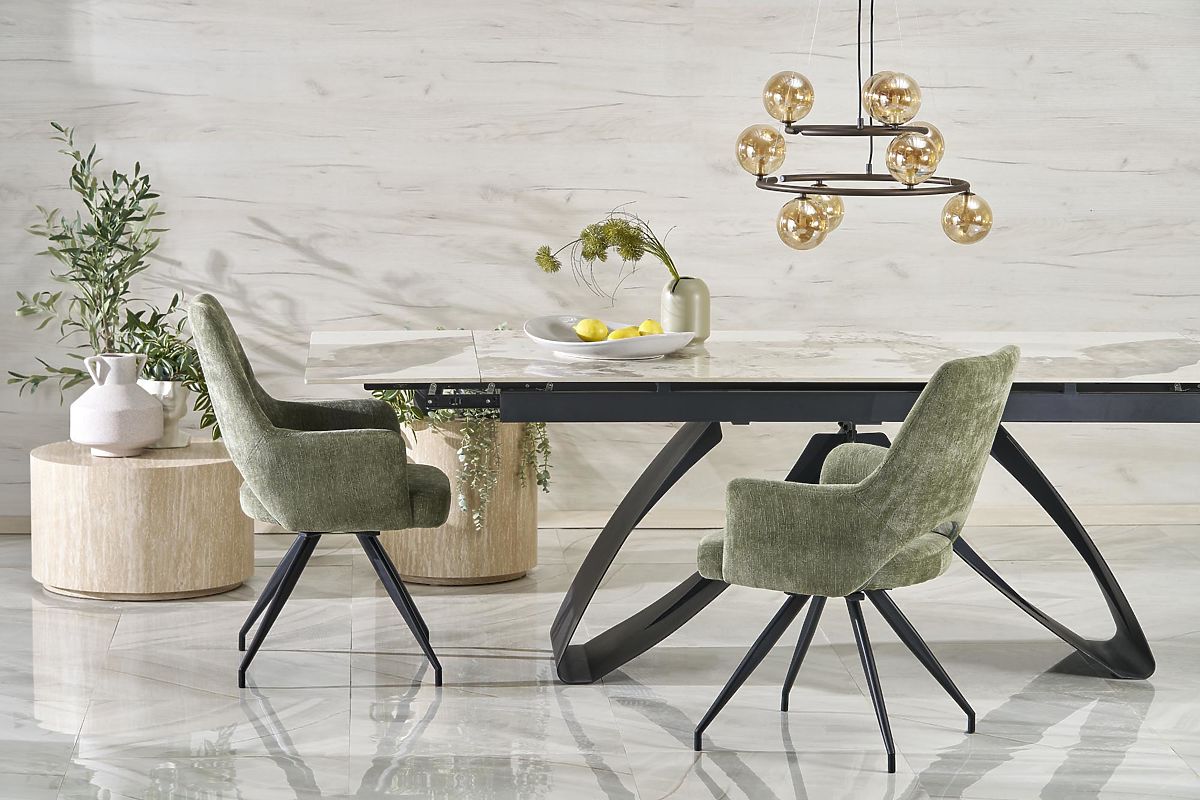 Lukafurniture.hu » Étkező és konyha / Étkező asztalok / HILARIO kinyitható asztal, lap - fehér márvány, lábak - fekete (3p=1ks)