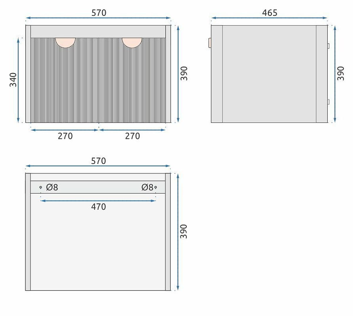 Modern Mario fürdőszobai készlet – szekrény mosdóval + tükrös szekrény A Mario fürdőszobabútor készlet stílusos megjelenést és mindennapi funkcionalitást ötvöz. Kiválóan illik modern fürdőszobákba, ahol a kényelem és a tér átgondolt szervezése fontos. A függesztett mosdós szekrényből és tükrös szekrényből álló készlet kész megoldást kínál, amely lehetővé teszi egy praktikus és egységes mosdózóna kialakítását anélkül, hogy különálló elemeket kellene keresni. Minimalista forma, amely mindenhol megállja a helyét A Mario modell jellegzetes, függőlegesen barázdált előlapokkal rendelkezik, amelyek modern és dinamikus megjelenést kölcsönöznek az egésznek. Két színváltozat közül választhat – grafit és fehér, mindkettő elegáns rézszínű fogantyúval kiegészítve. Így a készlet remekül illik a divatos elrendezésekhez, akár visszafogott, akár hangsúlyosabb verzióban. Praktikus megoldások mindennapi használatra A tükrös szekrény nyitott polcokkal van felszerelve, amelyek gyors hozzáférést biztosítanak a napi kozmetikumokhoz. Az alsó szekrény nagyobb tárgyakat, például tisztítószereket vagy palackos kozmetikumokat is elfér. Az egész készlet falra szerelhető, ami nemcsak optikailag növeli a teret, hanem megkönnyíti a bútor körüli tisztaság fenntartását is. A készlethez illeszkedő mosdó A készlet része egy kerámia mosdó, csaptelep nyílással, amely méretében illeszkedik az alsó szekrényhez. Univerzális formája jól harmonizál a készlet többi részével, egységes és esztétikus egészet alkotva. A Mario egy készlet, amely egységes megjelenést és praktikus megoldásokat kínál – készen áll a szerelésre és az azonnali használatra bármely modern fürdőszobában.