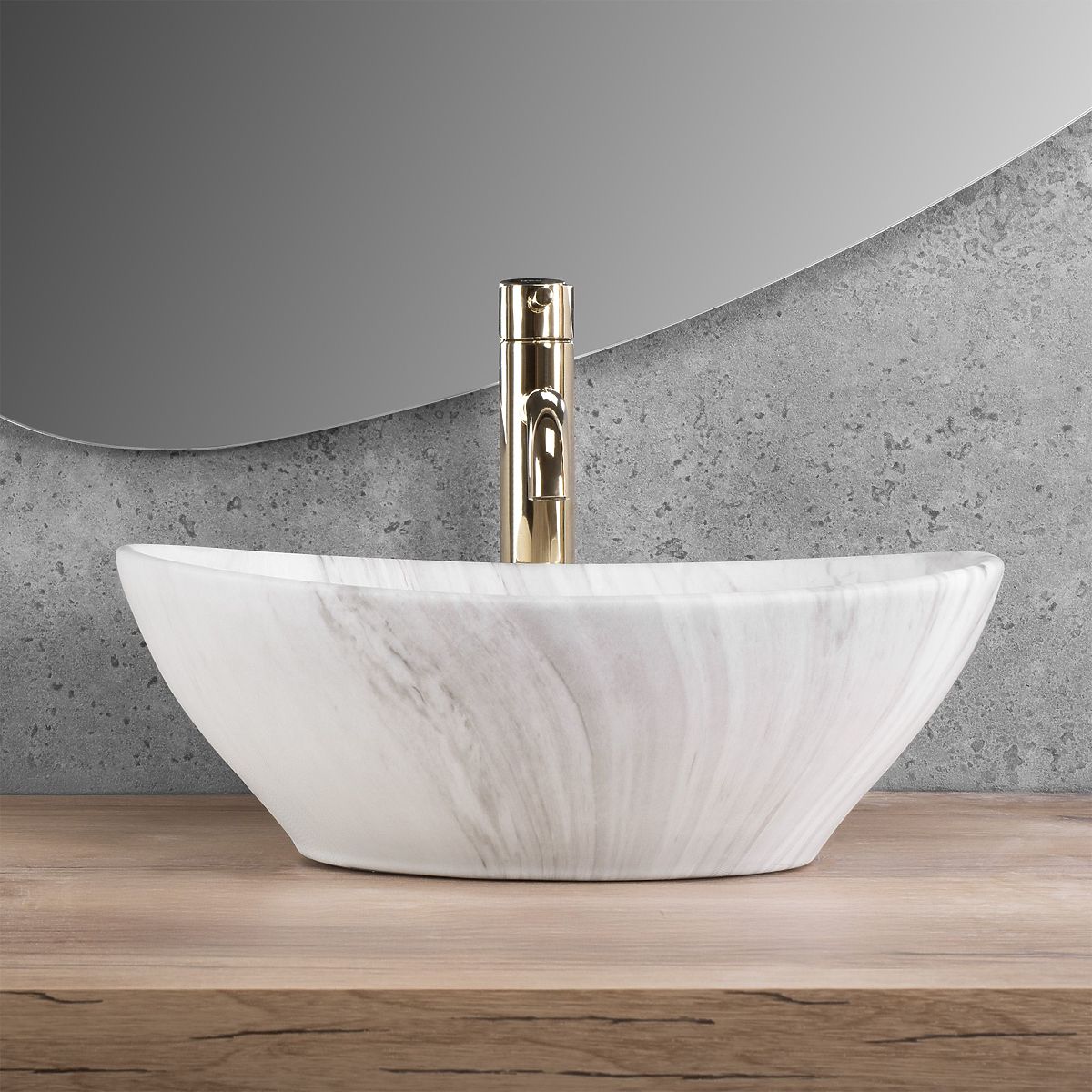 Bemutatjuk Önnek a kínálatunkban nagyon népszerű Sofia mosdó új modelljét. A mosdó a legkiválóbb szaniter kerámiából készült, amely rendkívül tartós és könnyen tisztítható. A mosdó kifejezetten kőhatású stílusban van kialakítva, ami minden fürdőszobában lenyűgöző hatást kelt. A mosdó pult- vagy szekrényre szerelhető. Tökéletesen illeszkedik bármilyen alapszínhez, amelyre a mosdó felszerelésre kerül.