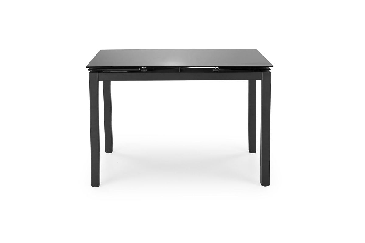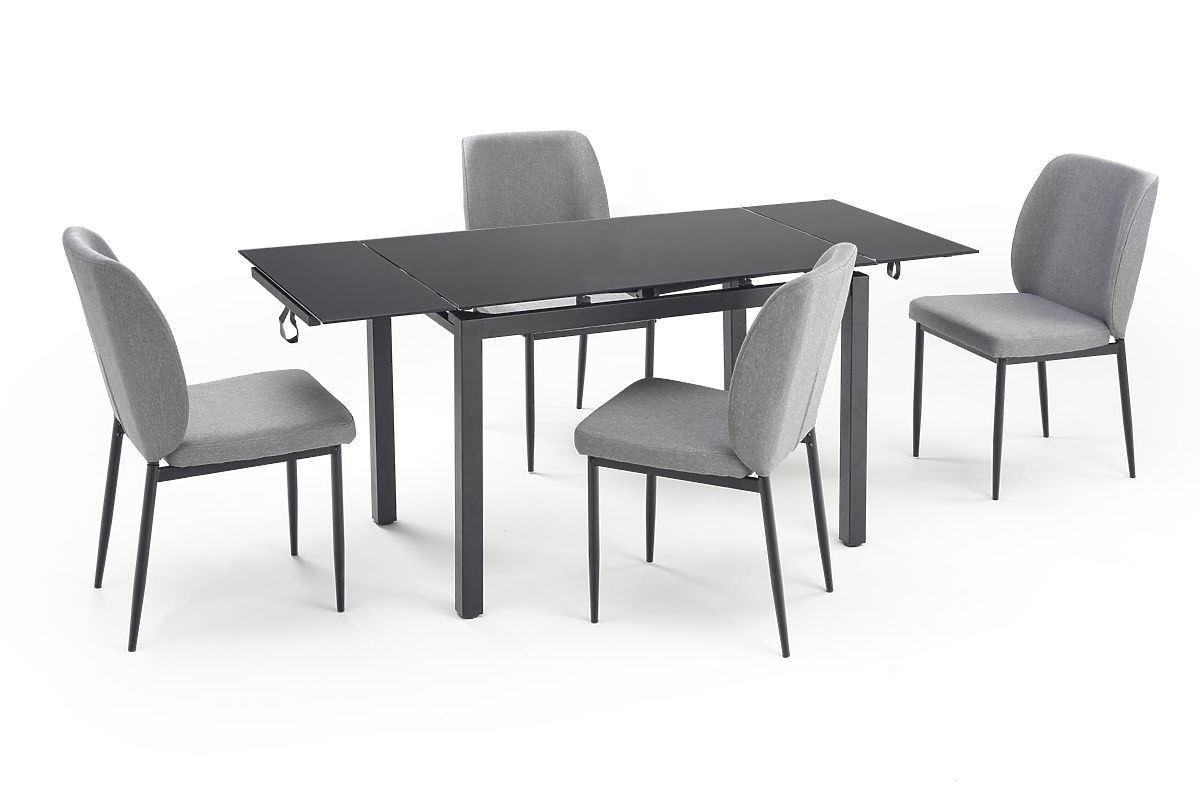 JASPER asztal + 4 szék készlet, méretek: asztal 110-170/70/76 cm, szék 44/58/89/47 cm, anyag: üveg / porszórt acél, szín: fekete-szürke