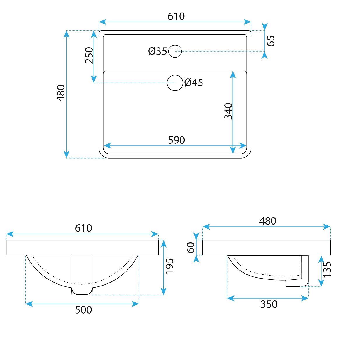 Beépíthető mosdókagyló, amelyet a kényelem és a funkcionalitás szem előtt tartásával terveztek. A speciális gyártási folyamatnak köszönhetően a mosdókagyló könnyen tisztítható és kényelmes a mindennapi használatra. A modern és egyedi design, valamint a felhasznált anyagok magas minősége biztosítja a tartósságot és megbízhatóságot hosszú éveken át. A mosdókagyló rendelkezik csaptelep szerelésére szolgáló nyílással és túlfolyó nyílással.
