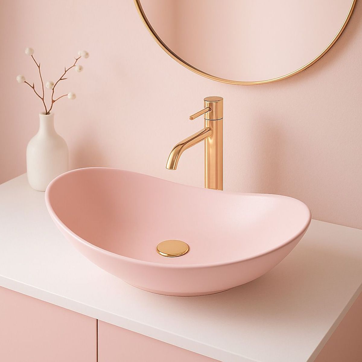 A Royal Powder Pink Matt modell remekül illik a modern elrendezésekhez, de a klasszikus és retro enteriőrökbe is beleillik, esztétikus és összhangban lévő teret teremtve.