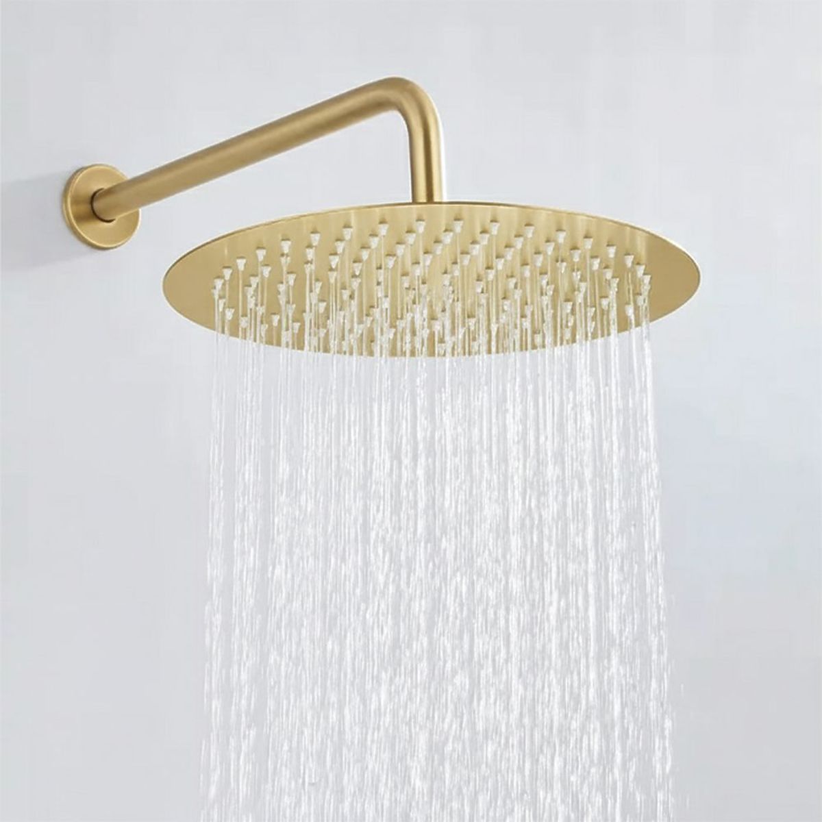 A modern, 25 cm átmérőjű arany színű zuhanyfej elegáns és praktikus eleme a zuhanyzónának. Magas minőségű anyagokból készült, tartósságot és ellenállást biztosít a nedvességgel és mindennapi használattal szemben. Minimalista, kerek formájának köszönhetően remekül illik a glamour, modern vagy klasszikus stílusú fürdőszobákba.