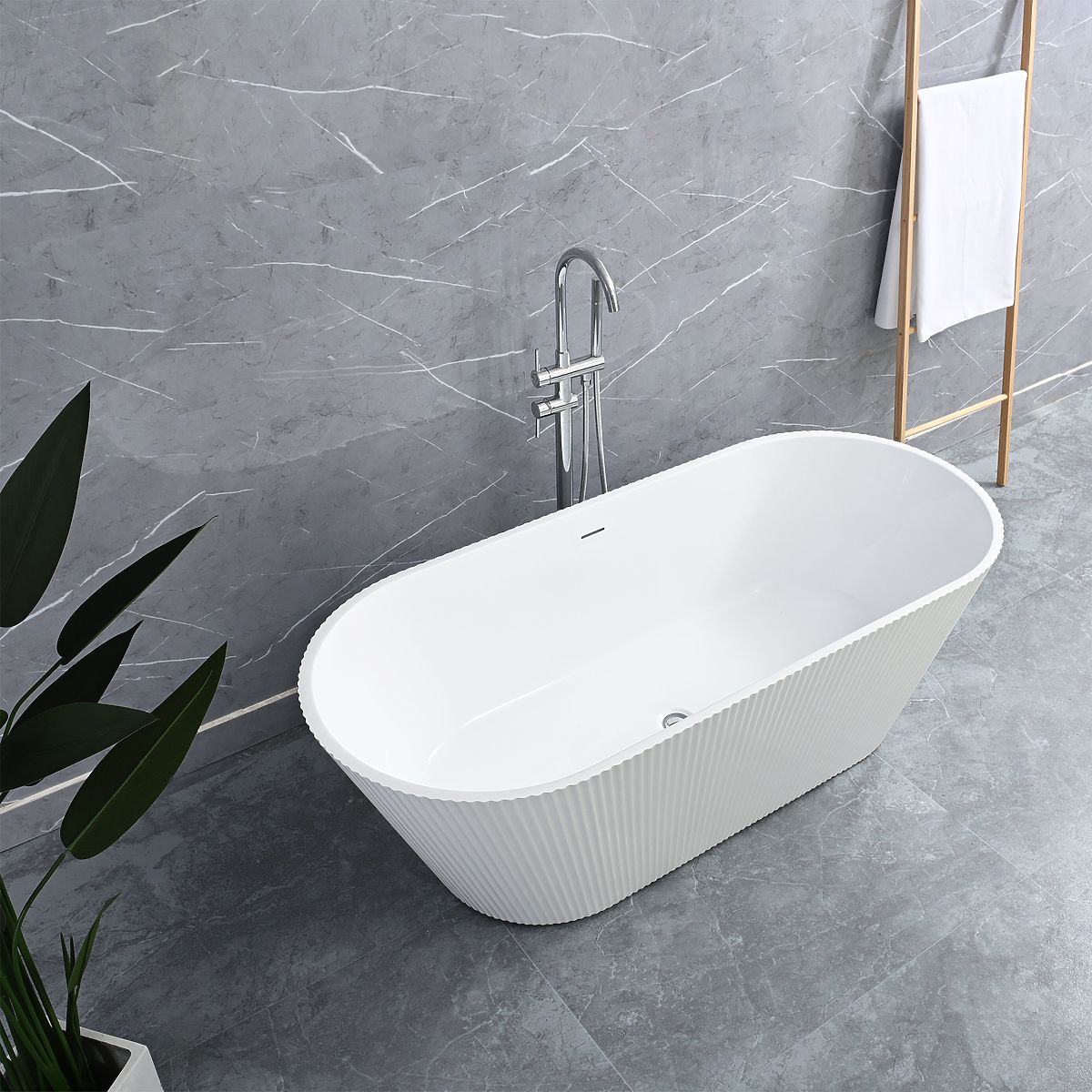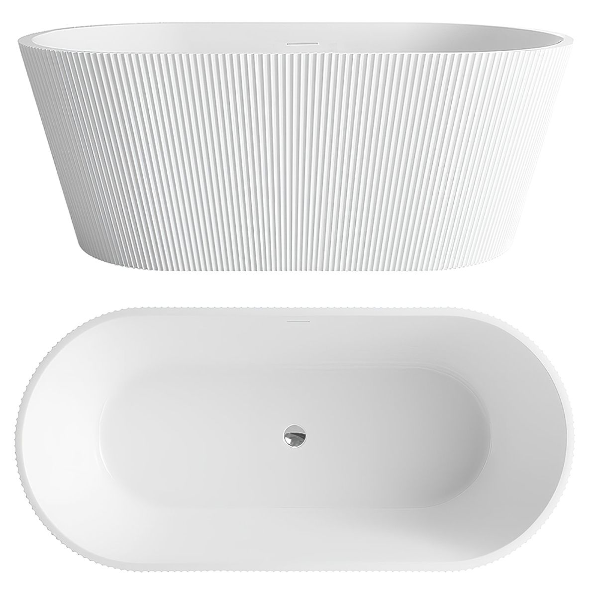 Szabadon álló kialakításának köszönhetően az Ofelia kád bárhol elhelyezhető a fürdőszobában — falnál, sarokban vagy a szoba közepén, elegáns és harmonikus fürdőszobai teret teremtve. A bordázott oldalszerkezet gyönyörűen veri vissza a fényt, mélységet és különleges bájt adva a belső térnek.