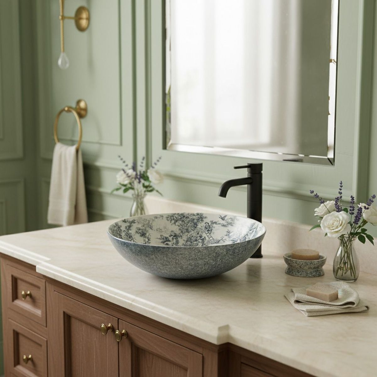 Szeretne egyedi, rusztikus hangulatot adni fürdőszobájának? Fedezze fel a kivételes, időtlen Rea Juliana mosdókagylót. Ez a kiváló minőségű szaniter kerámia és az egyedi dizájn ideális kombinációja, amely vonzza a figyelmet. A mosdókagyló elbűvöl gazdag, vintage mintázatával a tál belsejében és kontrasztos, kopott textúrájával kívül. Egyedi rusztikus minta – a tál belsejében található gazdag, kék díszítés különleges karaktert ad a belső térnek. Kontrasztos felületkezelés – a sima, mintás belső és a kék szerkezet kívül egyedi vizuális hatást hoz létre. Kiváló minőségű szaniter kerámia – garantálja a mindennapi használat elleni tartósságot és rendkívül könnyen karbantartható. Időtlen szerelés – lehetővé teszi a modern elrendezést és a mosdókagyló szépségének teljes bemutatását bármilyen fürdőszobai pulton. Kerek tálforma – klasszikus és időtlen forma, amely elegáns és praktikus a mindennapi használatra. Csaptelep nyílás nélkül – magas (álló) vagy falba süllyesztett (fali) csaptelepekkel való szerelésre tervezve. Túlfolyó nyílás nélkül – kiemeli a belső tál minimalista és sima dizájnját, biztosítva a tökéletesen sima felületet. Az időtlen Rea Juliana mosdókagyló azoknak való választás, akik értékelik az eredetiséget és valódi műalkotássá szeretnék tenni fürdőszobájukat. Minden részletében tökéletes, a legjobb kerámiából készült, központi pontja lesz bármely rusztikus, vintage vagy eklektikus stílusú elrendezésnek.