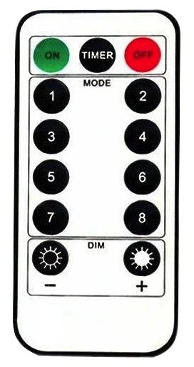 A készlet része egy távirányító, amely lehetővé teszi a be- és kikapcsolást, a fényerő növelését vagy csökkentését, valamint a függöny teljes villogó/égő üzemmódjait.