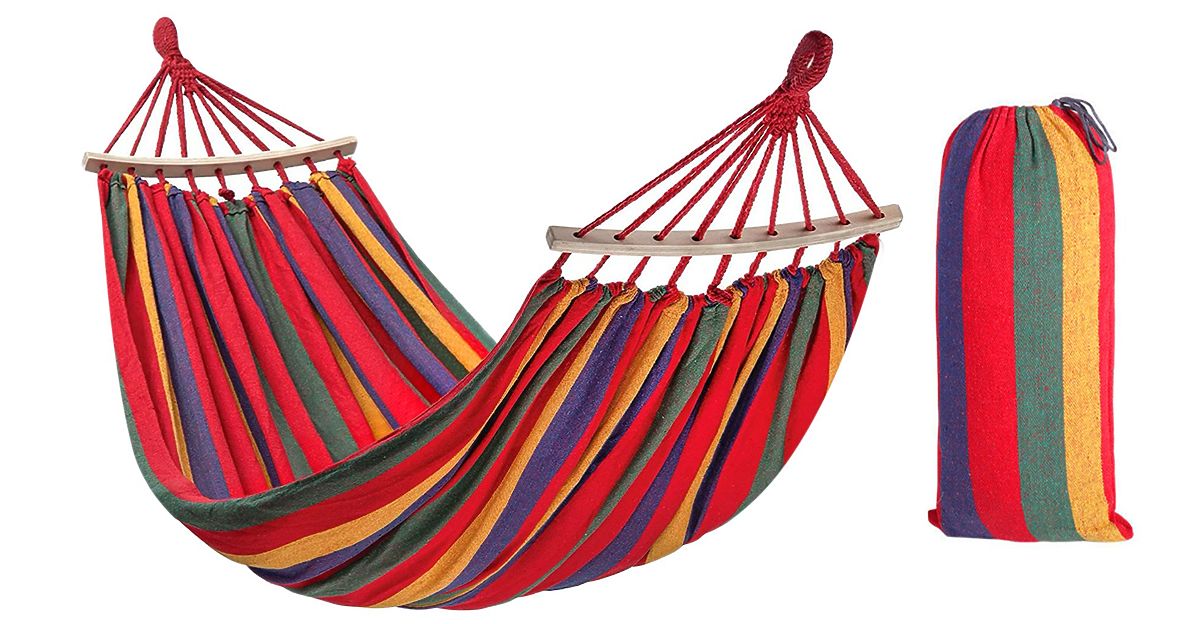 Egyszemélyes függőágy 40 cm-es rúddal 400257 Piros