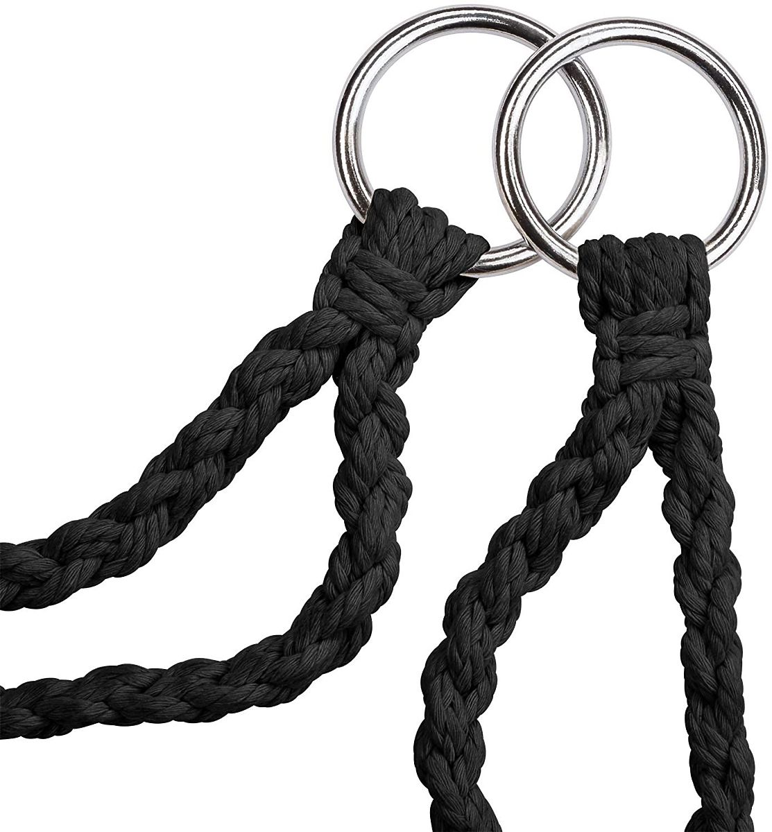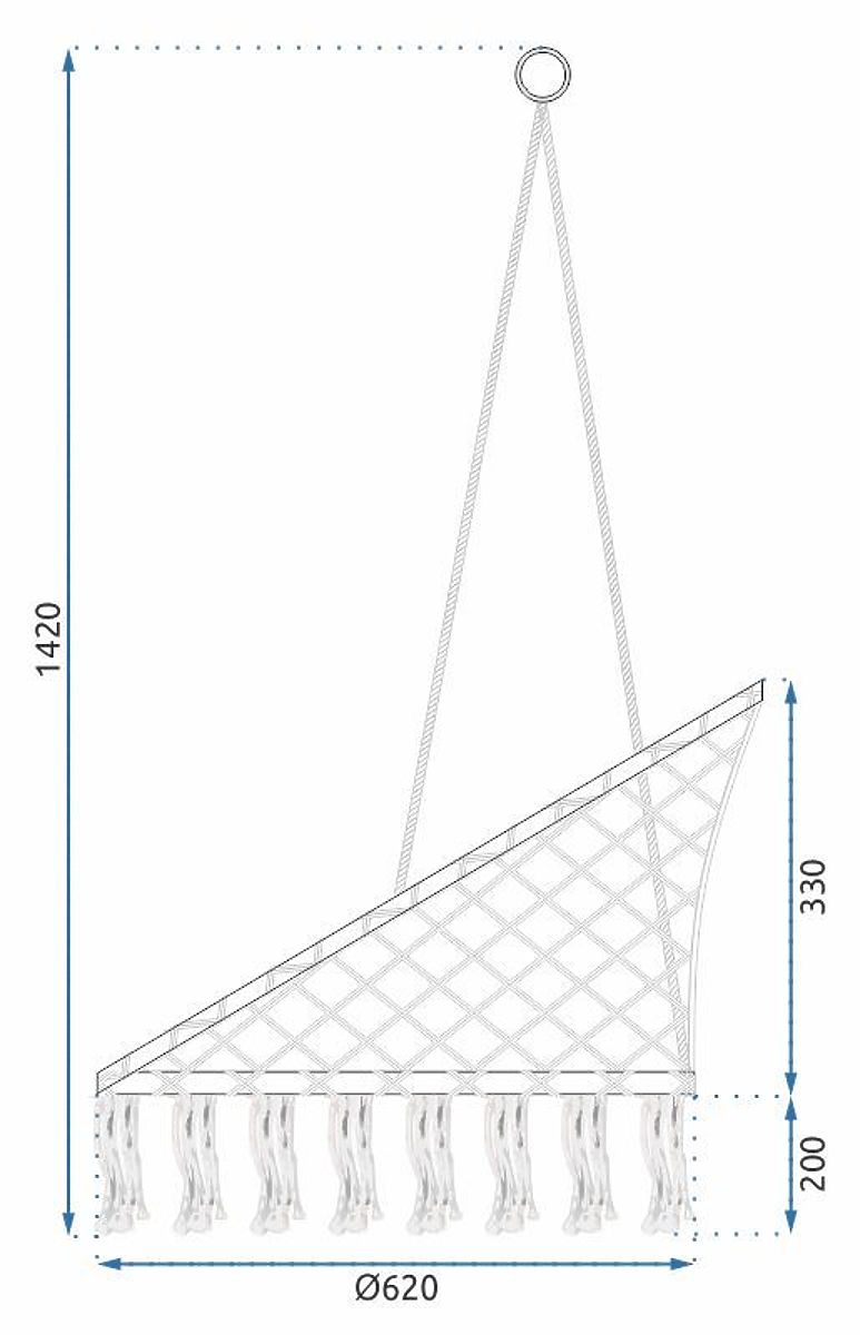 Nagyon kényelmes bútor, amely kellemesebbé teszi a pihenést a kertben, teraszon vagy otthoni környezetben. A hintát úgy tervezték, hogy az ülés a lehető legkényelmesebb legyen – a magas háttámla lehetővé teszi a kényelmes ülést vagy fekvést és pihenést. A kiváló minőségű boho stílusú függőhinta 2 fém karikából, puha párnákból és tartós kötélből készült, fonott formában. A háttámla 4 különálló kötéllel van felszerelve, amelyek lehetővé teszik az egy vagy két kampóra történő felfüggesztést.