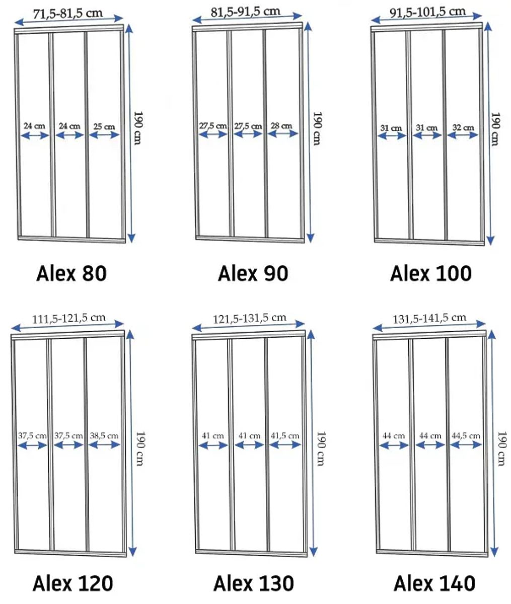 Az Alex ajtó egy fix elemből és két tolóelemből áll.