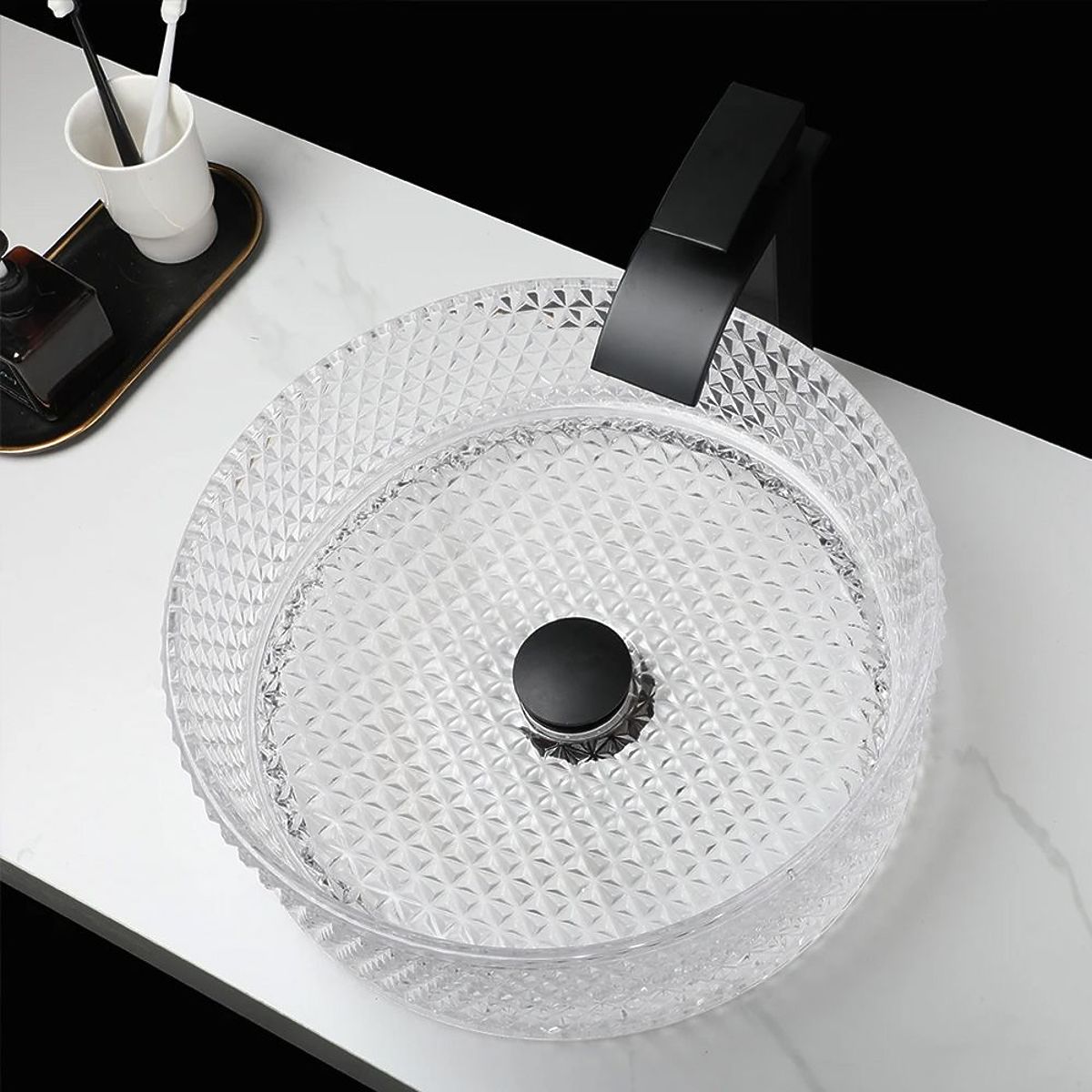 Érdekes vizuális hatást kelt a kristályokon visszaverődő fény. Az üvegmosdókagyló kristályos felülettel kétségtelenül érdekes mintázattal és dizájnnal rendelkezik.