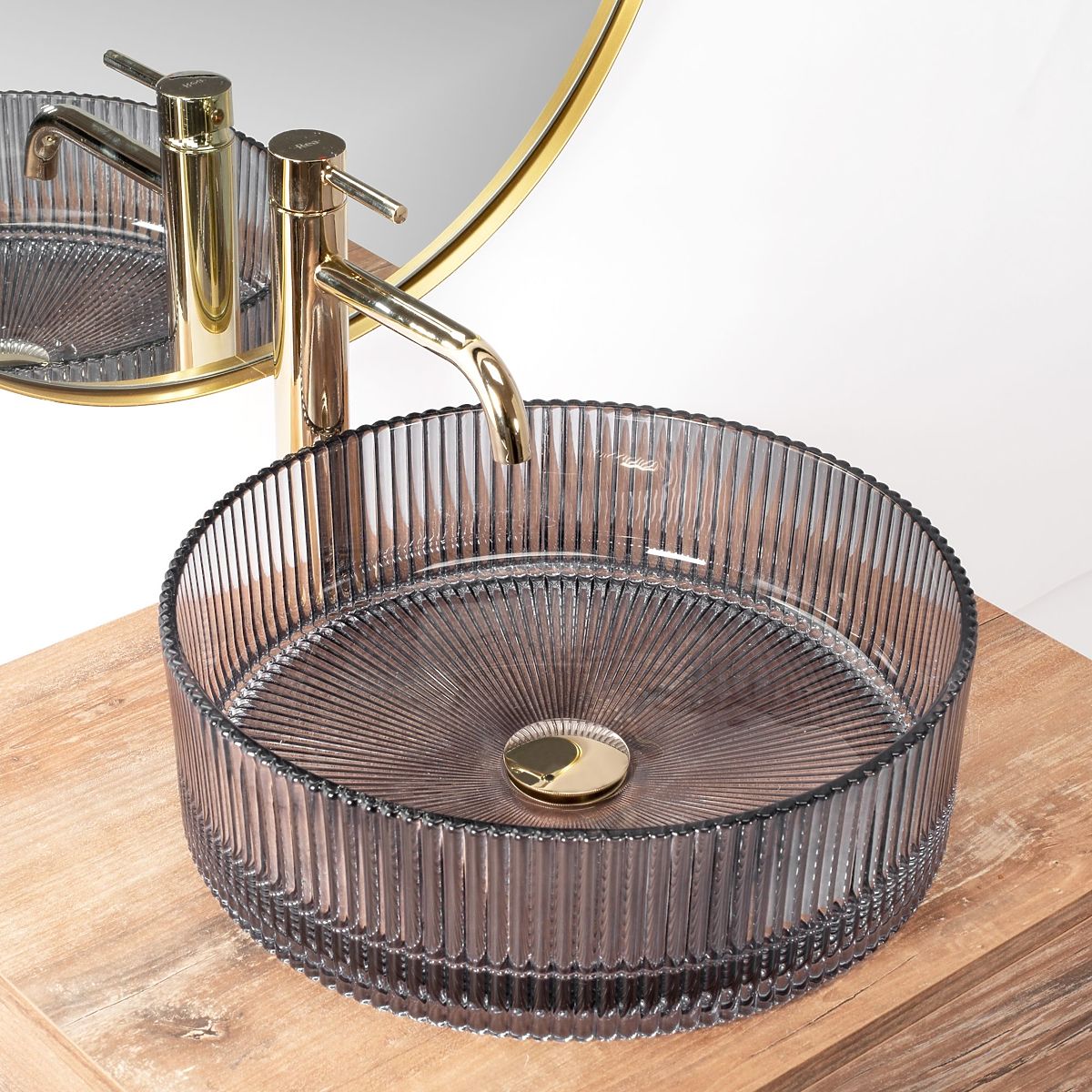 A modern Ingrid sorozat kristálymosdókagylója remekül mutat stílusos fürdőszobájában. Magas minőségű üvegből készült, és alkalmas munkalapra vagy szekrényre történő szerelésre. Az érdekes vizuális hatást a kristályokban visszatükröződő fény hangsúlyozza. Az üvegmosdókagyló kristályos felülettel kétségtelenül érdekes dizájnnal és mintával rendelkezik.