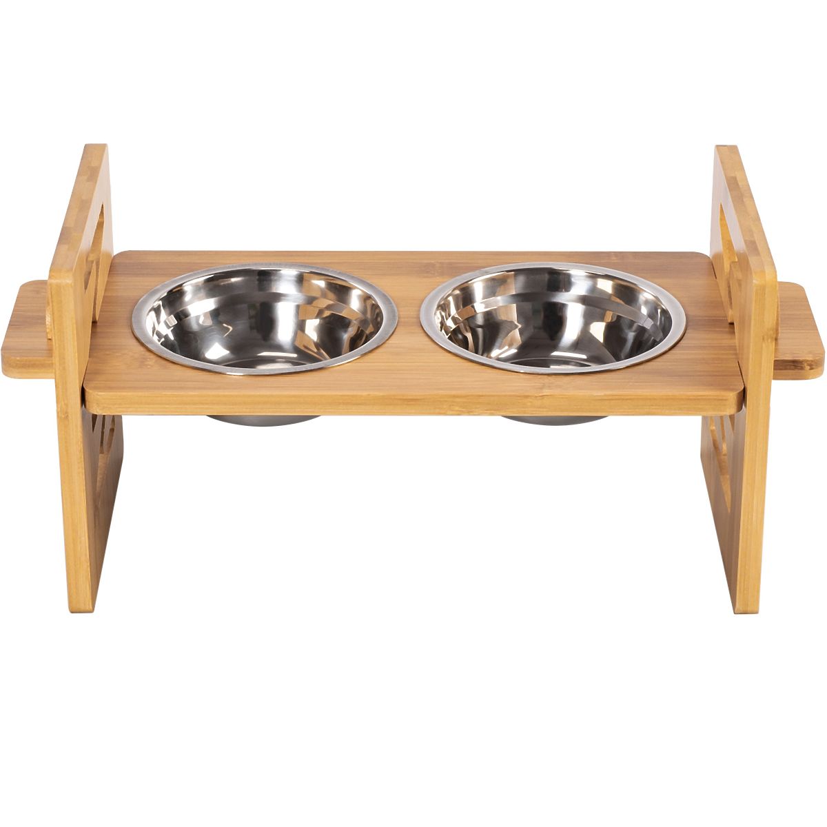 Gondoskodjon kedvence kényelméről a modern tálkészlettel, amely ötvözi a funkcionalitást az elegáns megjelenéssel. A természetes bambuszból készült, állítható magasságú állvány és a két rozsdamentes acél tál ideális megoldás mind kis, mind nagyobb négylábú kedvencek számára. Az állvány tartós, környezetbarát bambuszból készült, és állítható szerkezete lehetővé teszi, hogy a magasságot a kutya vagy macska méretéhez igazítsa. Így kedvencének nem kell túlzottan lehajolnia, ami egészségesebb testtartást és nagyobb kényelmet biztosít étkezés közben.