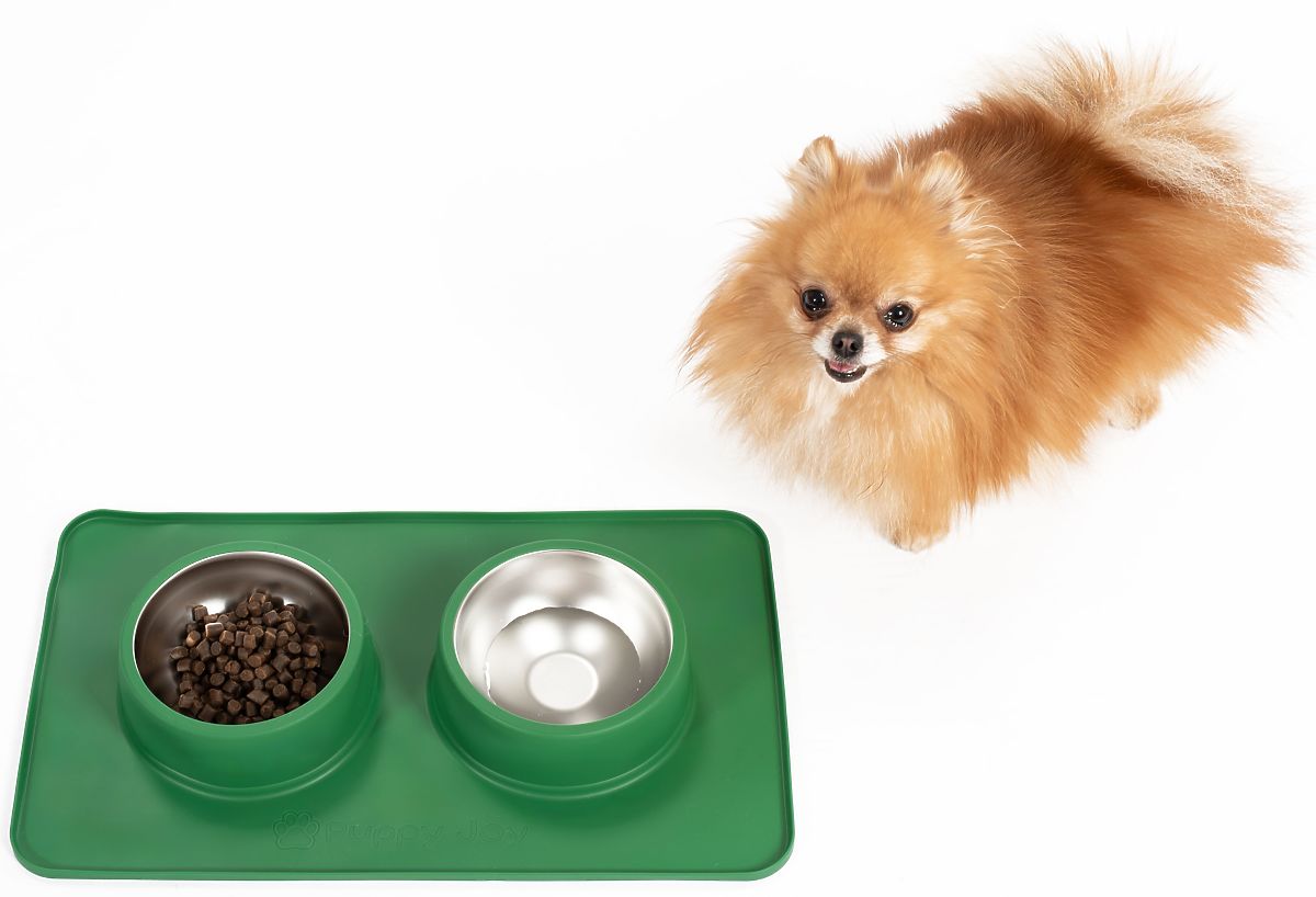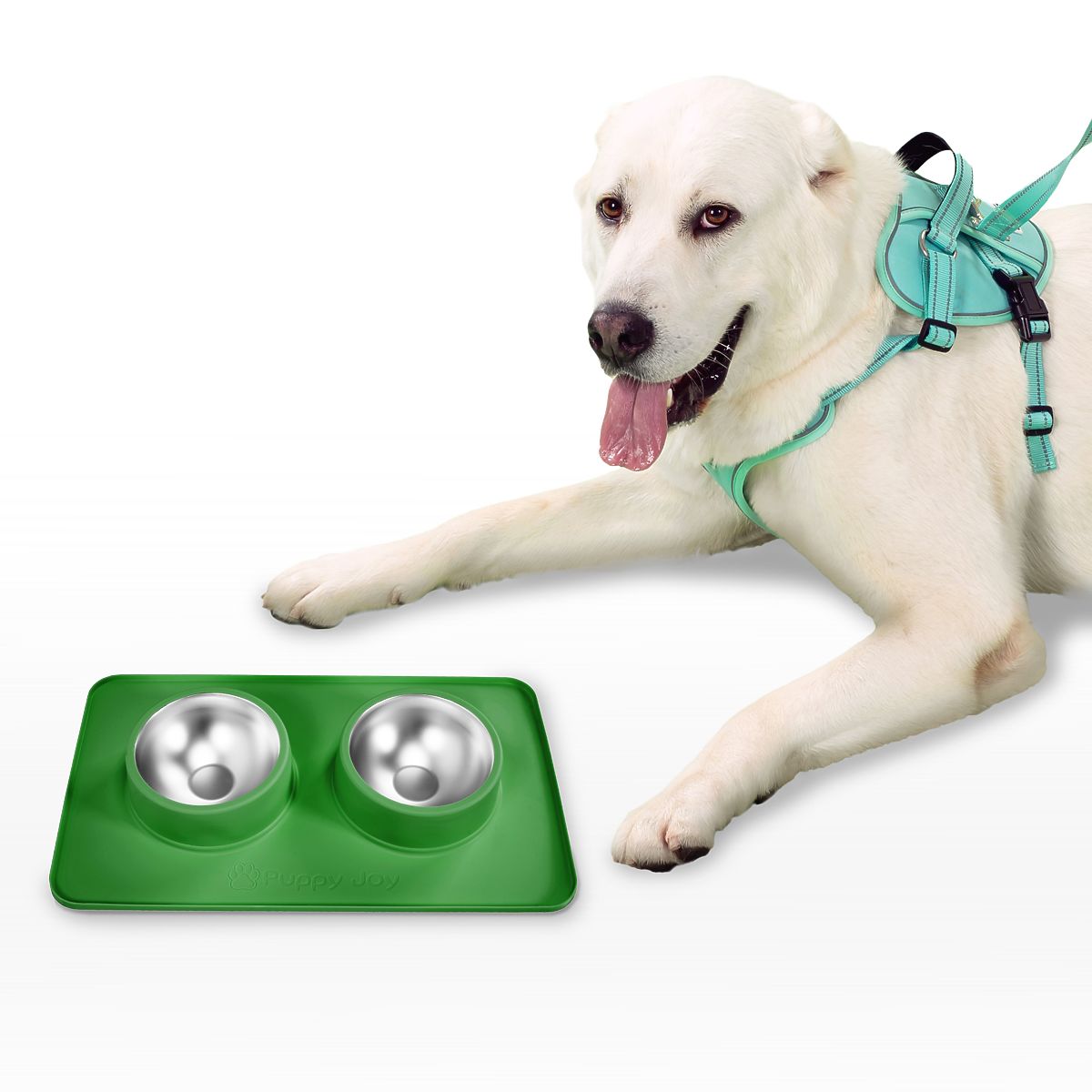 Fém Tál Kutya vagy Macska Számára Csúszásmentes Alátéttel Zöld PJ-087