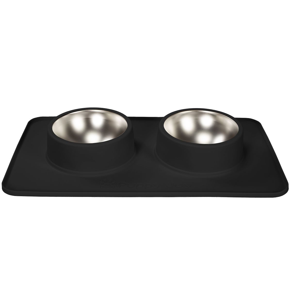 Fém Tál Kutya vagy Macska Számára Csúszásmentes Alátéttel Fekete PJ-086