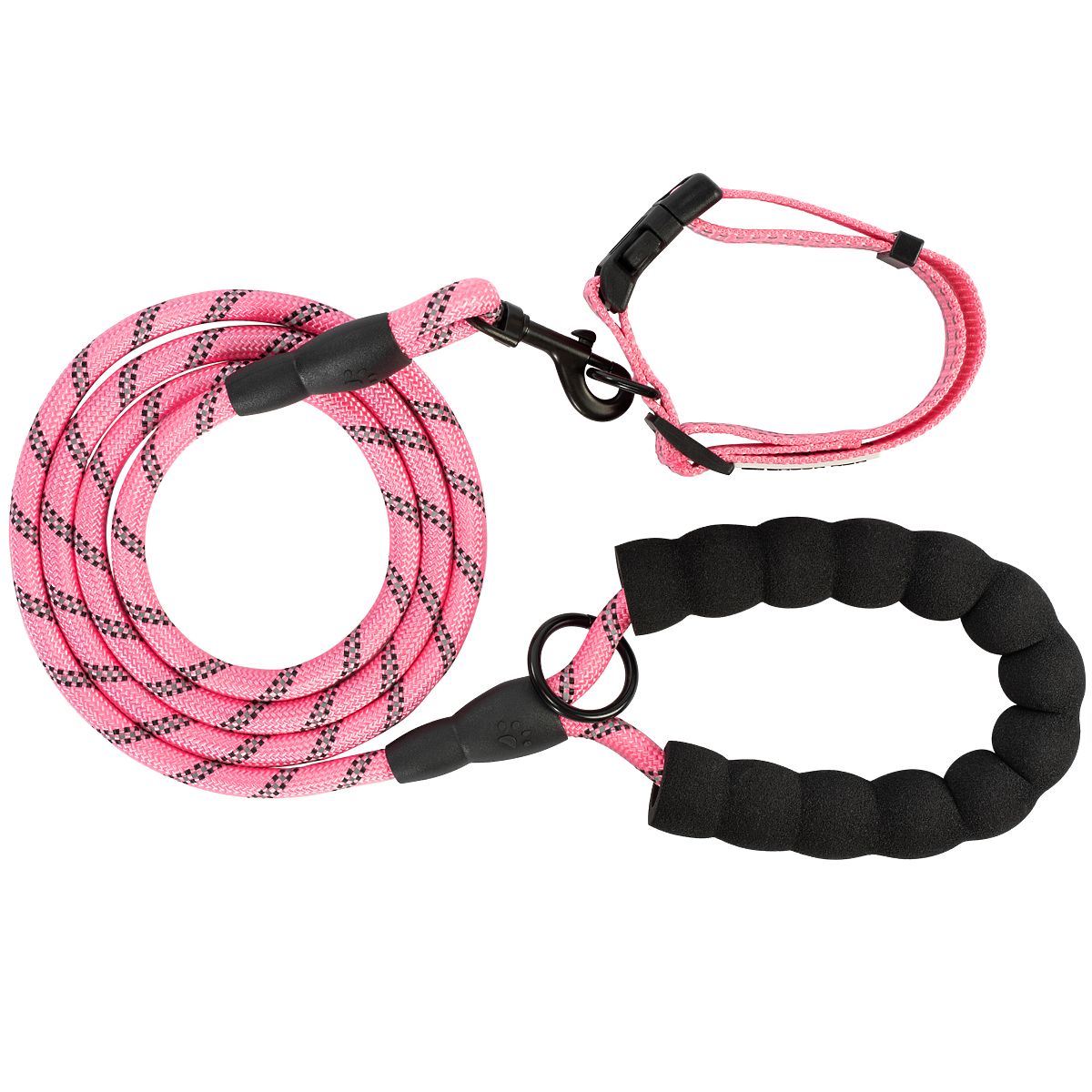 Lukafurniture.hu » Pro háziállatok / Nyomok és hámok / Reflexiós póráz és nyakörv kutyáknak PJ-036 Rózsaszín