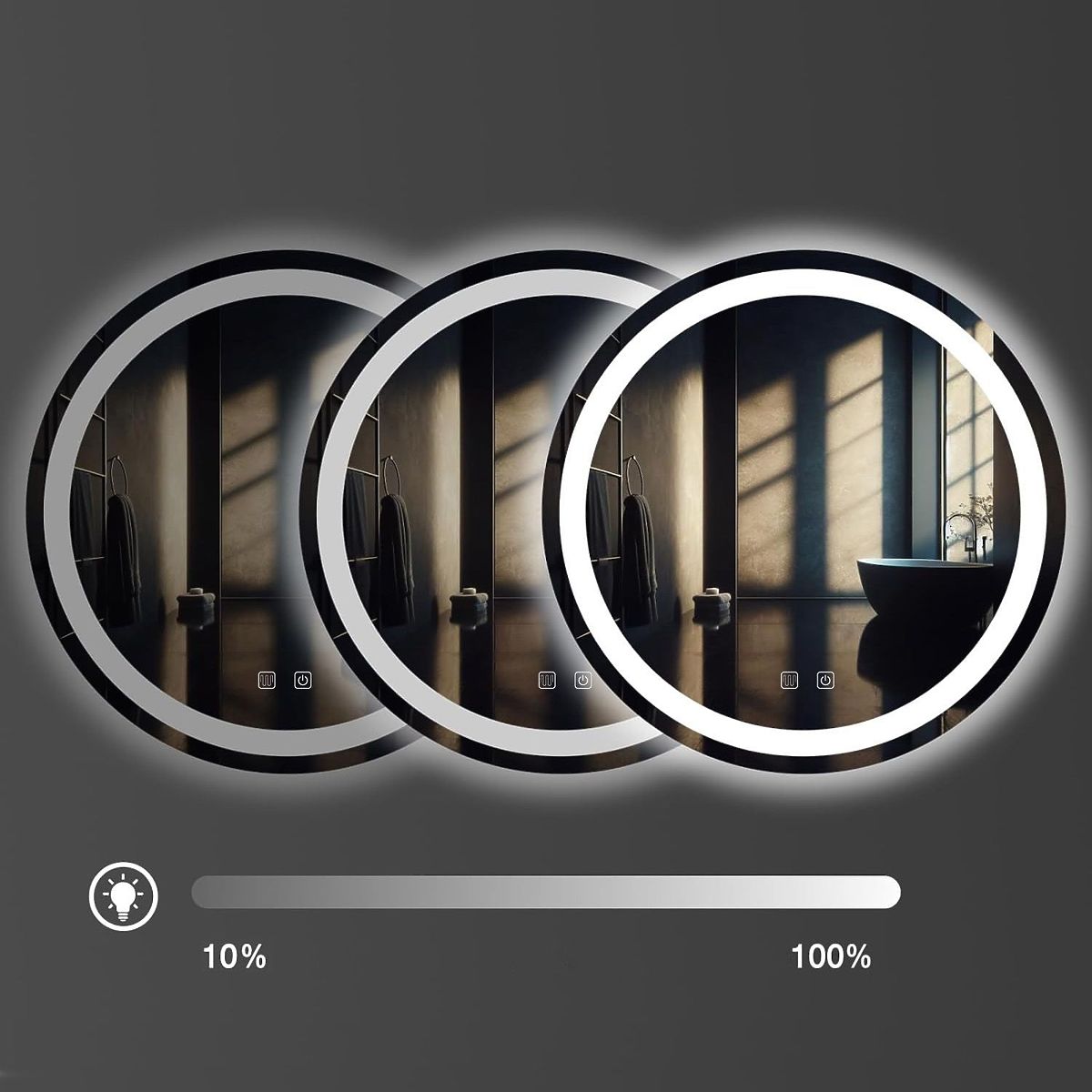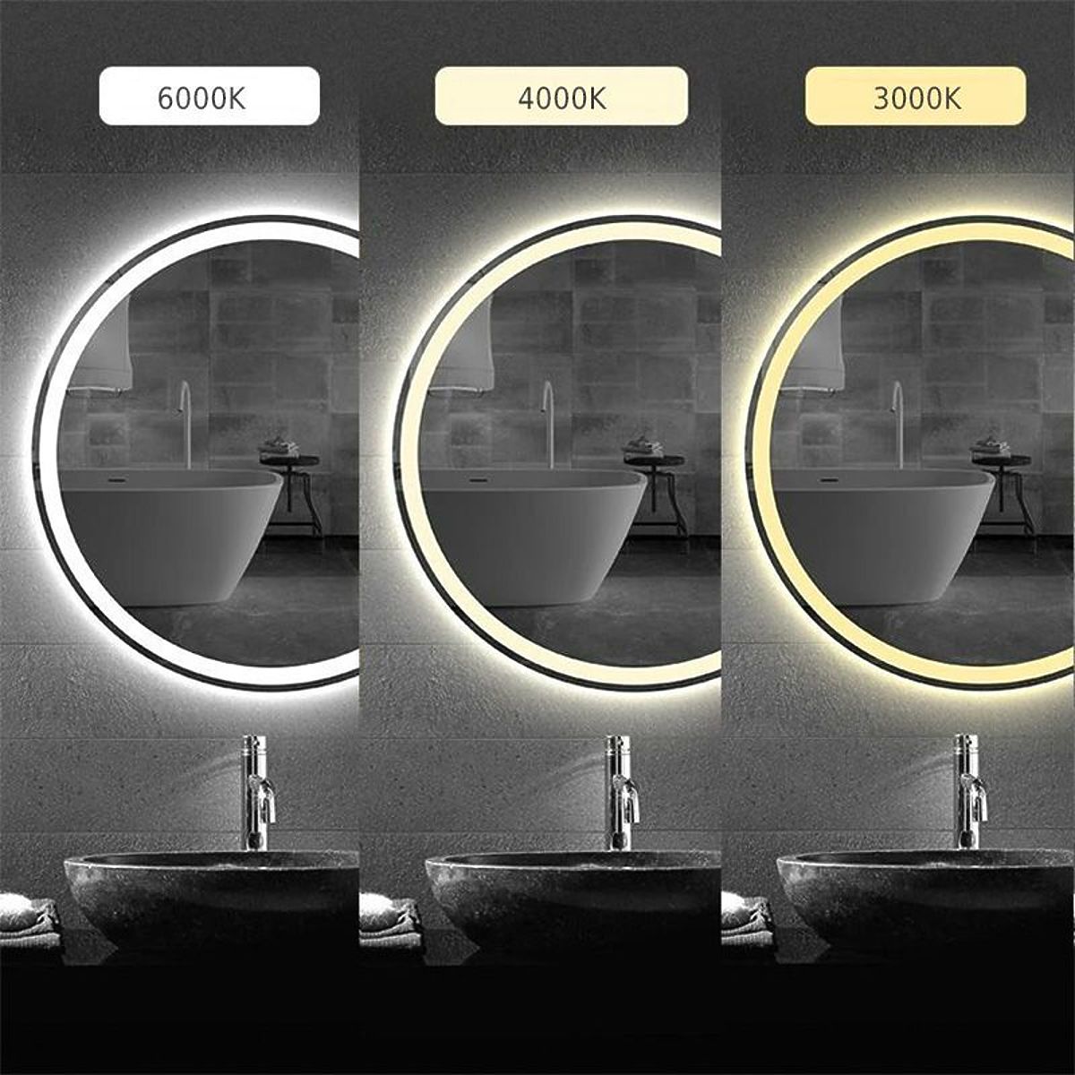A kerek tükör LED világítással ideális választás azok számára, akik értékelik a használat kényelmét és a modern dizájnt. A tükör a legkiválóbb minőségű anyagokból készült, tökéletesen mutat és nagyon tartós. Három érintéssel változtatható LED fény színt kínál – meleg, semleges és hideg, valamint fűtési funkcióval rendelkezik, amely megakadályozza a felület párásodását. Az érintőkapcsoló a tükör felületén található, és kék háttérvilágítást kap, amikor a funkció aktiválva van. A fehér színű tápkábel hossza 115 cm. LED keret: kb. 3,5 cm A LED keret távolsága a szélétől: kb. 2,5 cm.