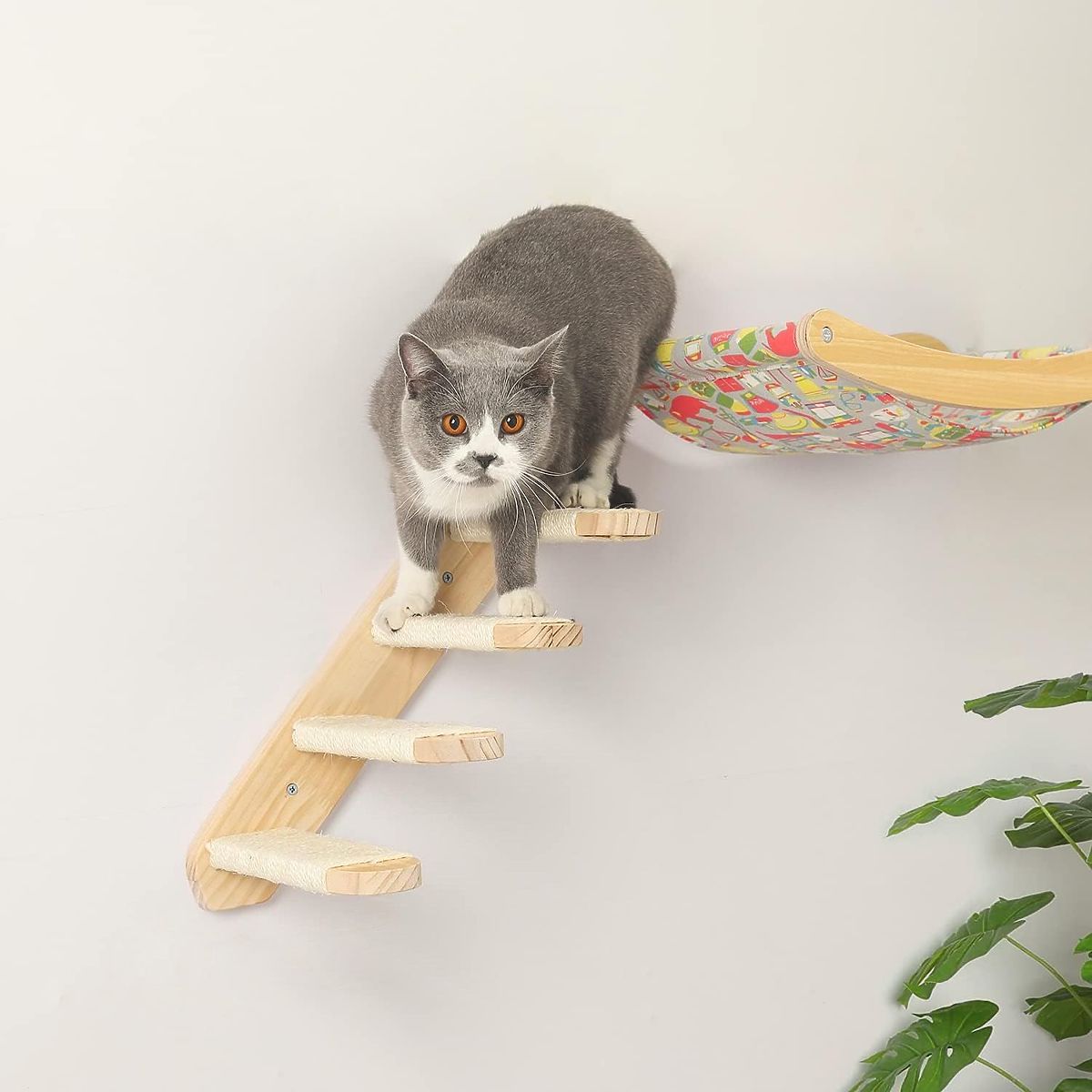 Bemutatjuk az ellenálló és esztétikus fali lépcsőket macskáknak. Ideális hely a karmok élesítésére, de játszóhelyként is szolgálhat macskájának. A lépcsők más fali elemekkel kombinálhatók, így játszóteret hozhatunk létre szőrös négylábúink számára. A kiváló minőségű anyagok használatának köszönhetően a kaparóoszlop bátran ellenáll a macskák karmaival szemben, és hosszú ideig szolgál.
