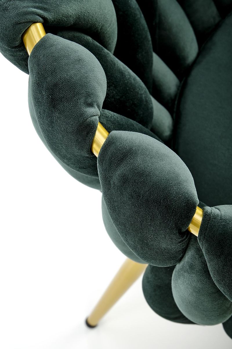 Sötétzöld és arany szék bársonyból és acélból. .. többet