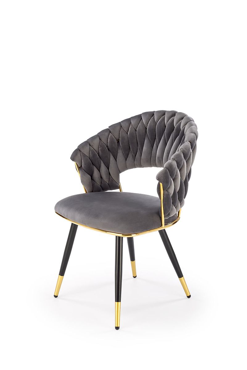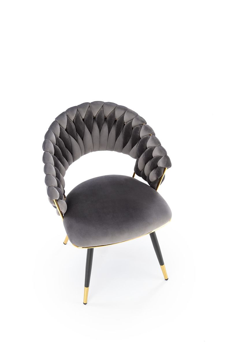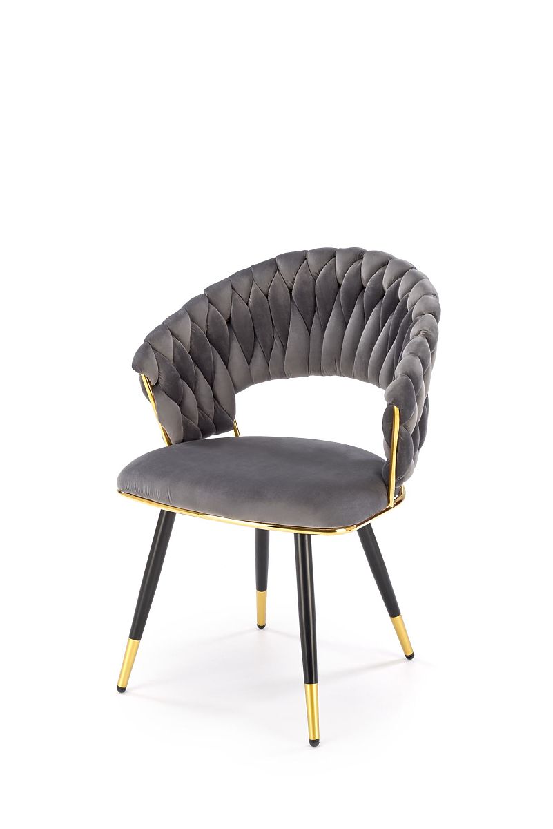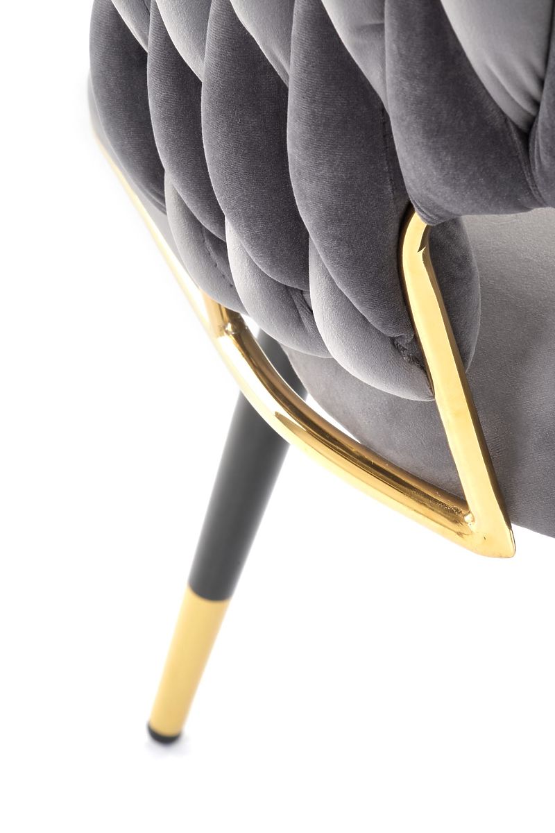 Szürke bársony szék arany és krómozott acél elemekkel. .. többet
