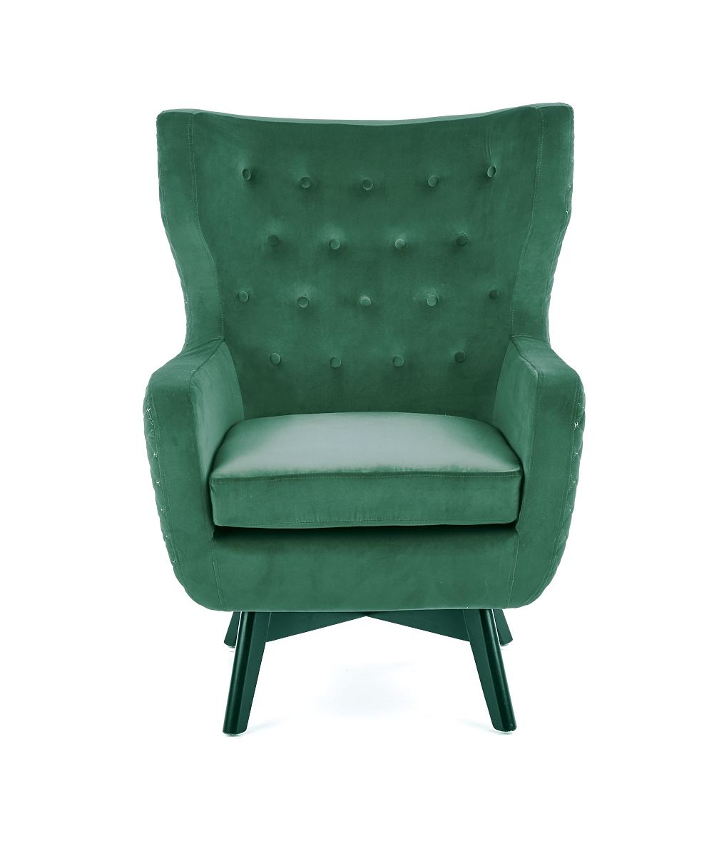 Sötétzöld szövet relaxációs fotel fekete lábakkal. .. többet