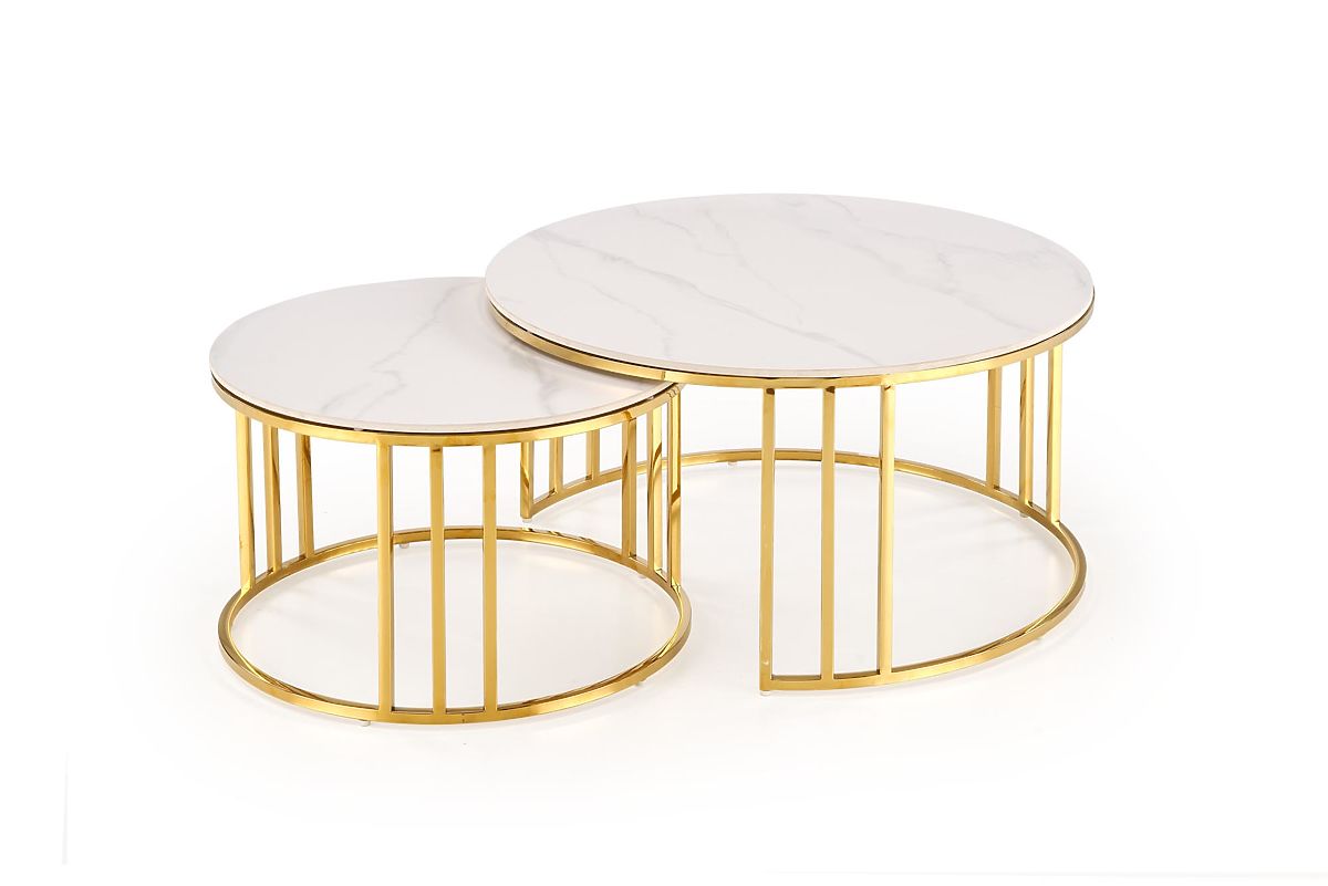 Lukahome.hu » Asztalok és dohányzóasztalok / Dohányzóasztalok / MERCURY 3 készlet 2 pad, készlet 2 pad, szín: fehér márvány / arany (2p=1db)
